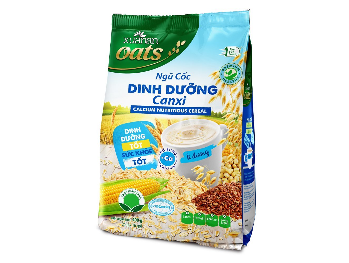 Combo Ngũ Cốc Gạo Lứt Huyết Rồng 400G(25G16 GÓI)+ Ngũ Cốc Dinh Dưỡng Canxi 400G(25G16 GÓI)[ít đường]  Ngũ cốc DINH DƯỠNG CANXI được làm từ rất nhiều loại ngũ cốc bằng công thứ đặc biệt. Sản phẩm được bổ sung Can xi giúp ngăn ngừa loãng xương và sử dụng ít đường. Vitamin, chất xơ và đạm tự nhiên là nguồn dinh dưỡng tốt cho sức khỏe. Thành phần: Ngũ cốc 32% (Yến mạch 10%, bột gạo lứt 5%, bột gạo, bột bắp, bột đậu nành, bột lúa mì, lúa mạch), sữa bột nguyên kem, bột dừa, bột kem thực vật, đường, muối i-ốt, Canxi 0.7%, maltodextrin, chất là dày xanhthan gum (E415), chất chống đông vón (E551), hương liệu tổng hợp dùng cho thực phẩm. 6.75 g đường trong 1 khẩu phần 25g. Ngũ cốc GẠO LỨT HUYẾT RỒNG là thức uống thơm ngon bổ dưỡng, được làm từ gạo lứt, yến mạch và nhiều loại ngũ cốc. Sản phẩm được bổ sung thêm can xi và sử dụng ít đường. Vitamin, khoáng chất, chất xơ tự nhiên giúp hấp thu dinh dưỡng tốt và thanh lọc cơ thể. Thành phần: Ngũ cốc 32% (gạo lứt huyet rong 10%, yến mạch 6%, gạo lứt, gạo nếp cẩm 3%, bắp, đậu nành, lúa mỳ, lúa mạch), bột kem thực vật 29%, đường, đường ăn kiêng Isomalt, sữa tách béo 7%(Instant Skim Milk Powder &%), bột dừa, Canxi 0.7%, Muối I-ốt, maltodextrin, chất maltodextrin làm dày xanthan gum (E415), chất chống đông vón (E551), hương liệu tổng hợp dùng cho thực phẩm. 6.5 g đường trong khẩu phần 25g Đối tượng sử dụng: Trẻ từ 3 tuổi trở lên và người lớn. Đặc biệt là người ăn theo chế độ ăn giảm đường. Hướng dẫn sử dụng: Hòa 1 gói Ngũ cốc với khoảng 125ml nước sôi, khuấy đều trước khi dùng. Dùng 2-3 gói mỗi ngày Bảo quản: Bảo quản nơi khô ráo, thoáng mát; tránh tiếp xúc trực tiếp với không khí và ánh nắng mặt trời. Thông tin cảnh báo: Không dùng khi sản phẩm bị rách, mốc hoặc đã hết hạn sử dụng. Sản phẩm của: Công ty TNHH Thực Phẩm Dinh Dưỡng Xuân An