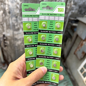 Vỉ 10 Viên Pin LR41 (AG3), LR44 (AG13), LR1130 (AG10) Cúc Áo 1,5V Nhật Bản LR41 còn gọi là AG3 LR44 còn gọi là AG13 LR1130 hoặc LR1131 còn gọi là AG10 Pin sử