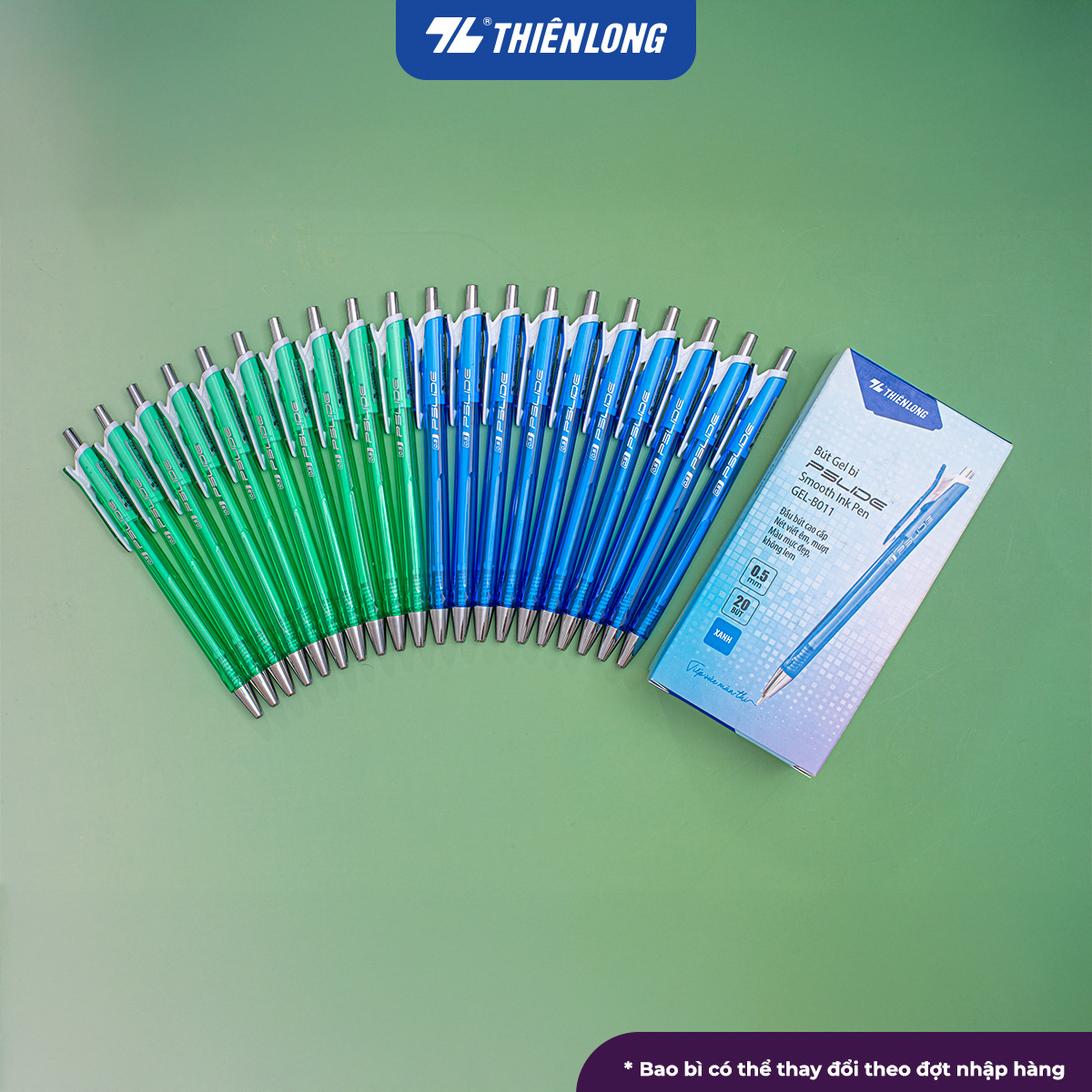 Mô tả sản phẩm Thông số kĩ thuật : Tên danh mục Bút Gel B Thương hiệu Thiên Long Đường kính viên bi 0.5mm Màu mực Xanh/đỏ/đen Đóng gói 20 cây/hộp Trọng lượng 10 gram
