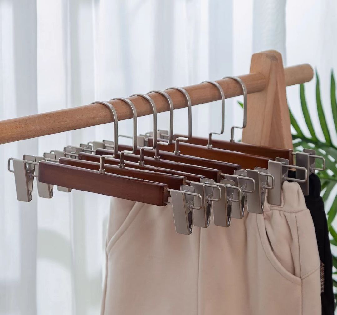 MÓC KẸP INOX GỖ – SANG TRỌNG & TIỆN LỢI Thiết kế cao cấp: Chất liệu gỗ tự nhiên kết hợp kẹp inox bền chắc. Công năng đa dạng: Kẹp quần, chân váy, giữ form quần áo tốt. Điều chỉnh linh hoạt: Kích thước 30cm, có thể điều chỉnh độ rộng hẹp. Phù hợp mọi nhu cầu: Dùng cho shop thời trang, gia đình, cá nhân. Combo tiết kiệm: Bán theo set 10 móc kẹp & 20 móc kẹp gỗ nâu.