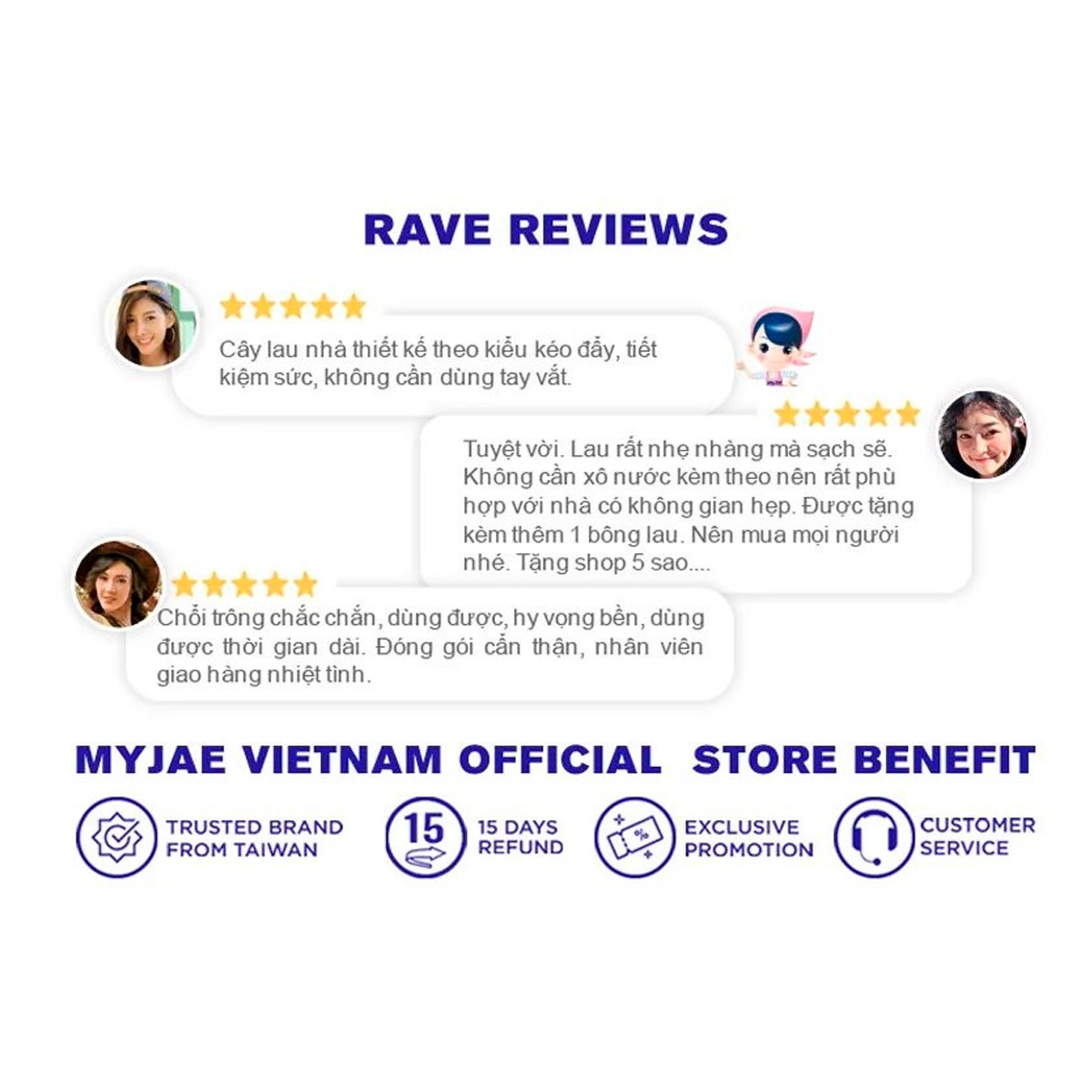 - Thương hiệu : MyJae - Tên sản phẩm : Cây lau nhà xoay siêu tốc mini MyJae - Màu sắc : Trắng, Tím - Giỏ vắt dễ dàng tháo rời , dễ vệ sinh ,thùng đa
