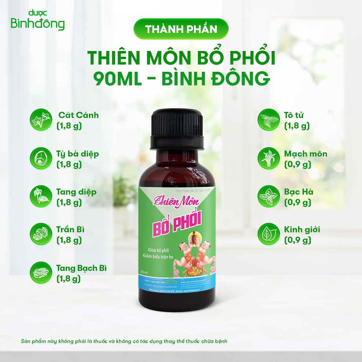 Thiên Môn Bổ Phổi của Dược Bình Đông – Chai 90ml dành cho Trẻ em - Bổ phổi, tăng cường sức đề kháng, giảm ho cho trẻ ✓ Trẻ nhỏ là đối tượng dễ bị