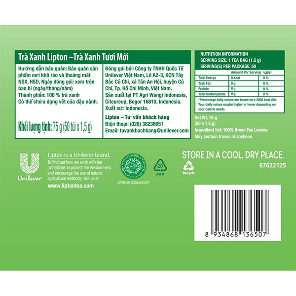 Mua tại TiktokLipton Trà Xanh Tươi Mới Hộp 1.5g x 10 túi