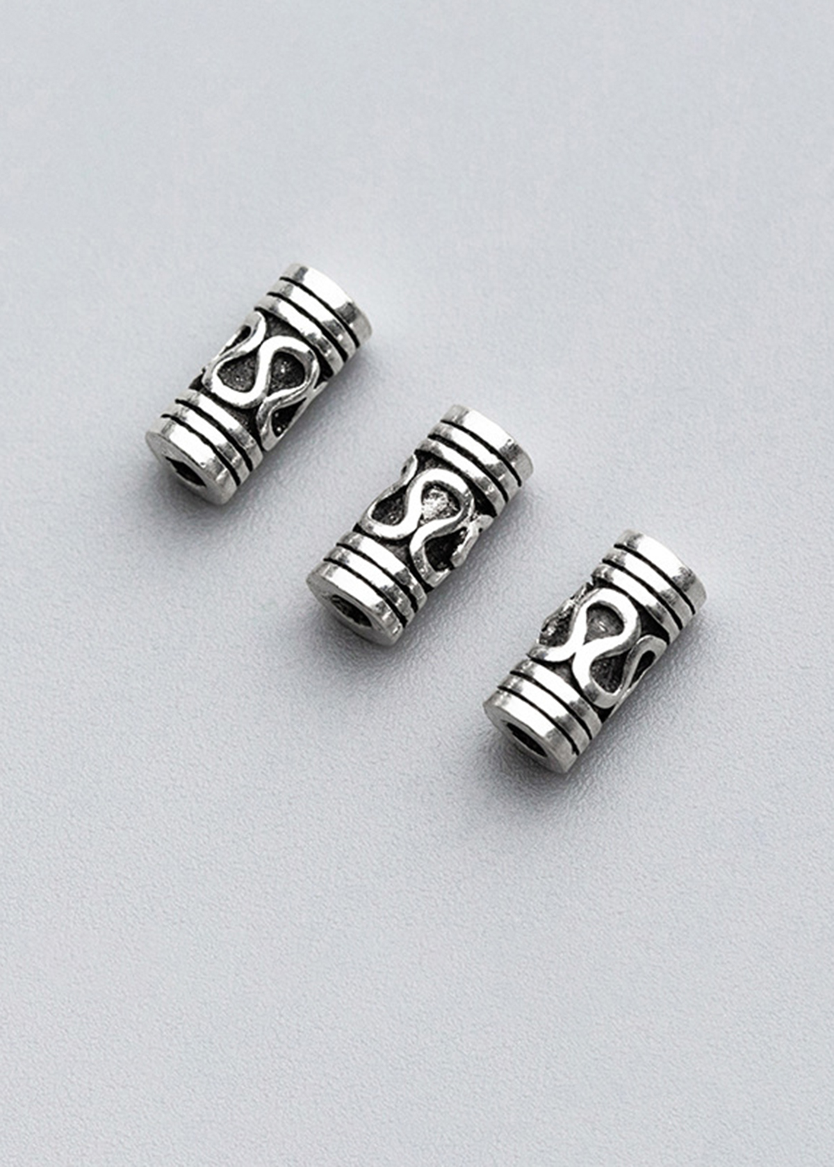CHARM BẠC CHẶN HẠT HÌNH TRỤ HỌA TIẾT HOA VĂN: