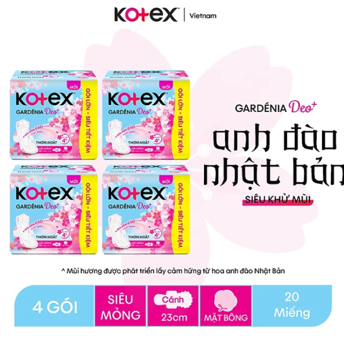 Kotex Gardenia Deo+ MỚI, Hương hoa Anh Đào Nhật Bản thơm ngát đến 4H