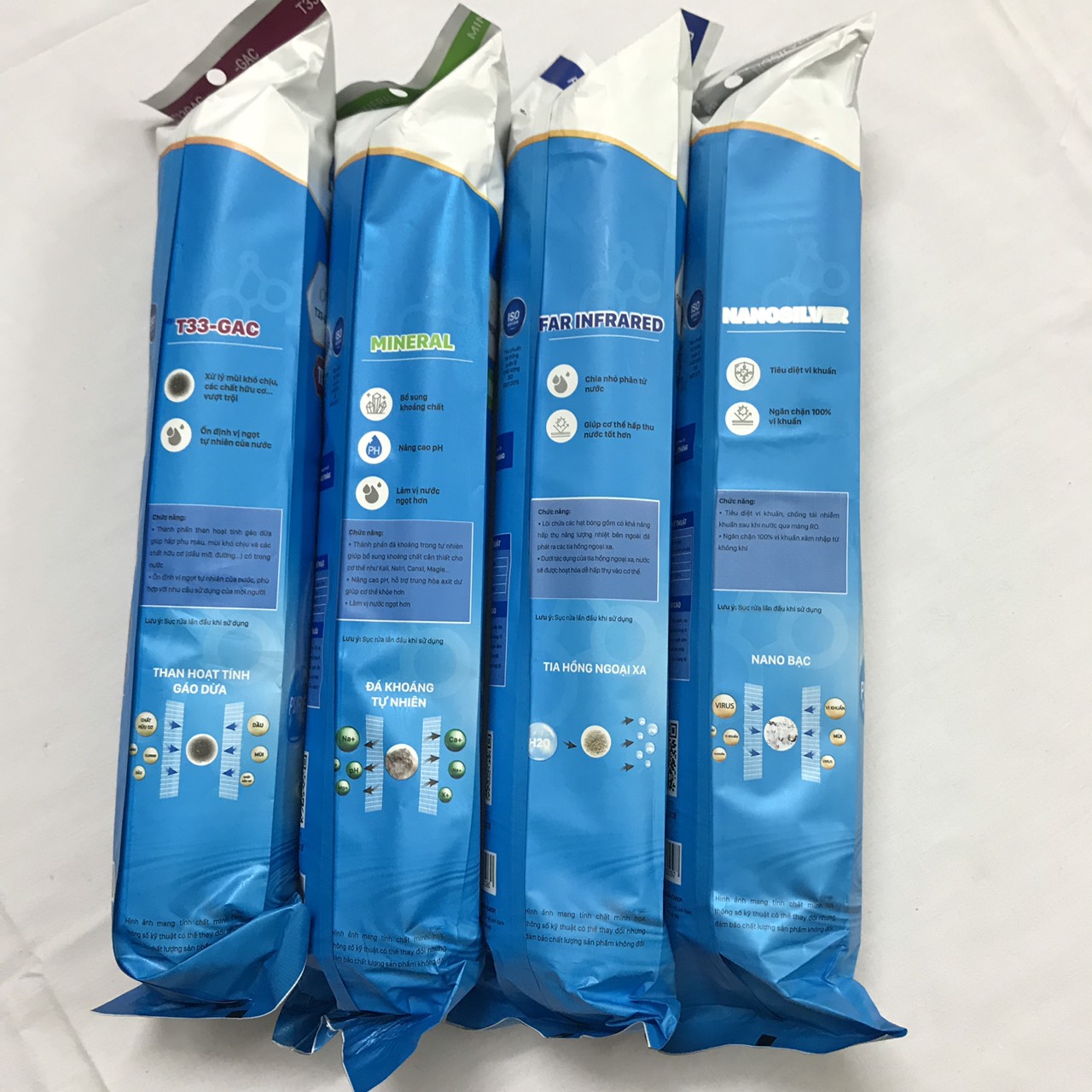 - Ổn định lại vị ngọt mát tự nhiên của nước từ khoáng tự nhiên, bổ sung khoáng chất, chất điện giải có ích cần thiết cho cơ thể con người. Nâng cao pH, giúp trung hòa axit dư làm cơ thể khỏe hơn. – Lõi lọc số 7 ( Lõi lọc Far Infrared ): +Cấu tạo bằng vỏ nhựa bên trong chứa hạt bóng gốm Bioceramic (còn gọi là đá hồng ngoại) +Hấp thụ năng lượng nhiệt bên ngoài để phát ra các tia hồng ngoại xa, nước sẽ được hoạt hóa dễ hấp thụ vào máu hơn. Cơ chế bức xạ hồng ngoại để chia các nhóm phân tử nước nhỏ hơn, tăng lượng oxy trong nước để cơ thể có thể hấp thụ dễ dàng hơn, tránh khô da và giảm quá trình lão hóa. Lõi lọc số 8 ( Lõi Nano Silver ): +Cấu tạo bằng vỏ nhựa bên trong chứa than hoạt tính tích hợp các hạt nano bạc. +Dưới tác dụng của Nano bạc, nước sẽ được diệt trừ vi khuẩn xâm nhập từ không khí cũng như phát sinh trong đường ống nước trong quá trình sử dụng. Thời gian thay bộ 4 lõi chức năng: Thay sau 12 tháng khoảng 10.000 lít nước(tùy thuộc nhu cầu sử dụng hàng ngày)
