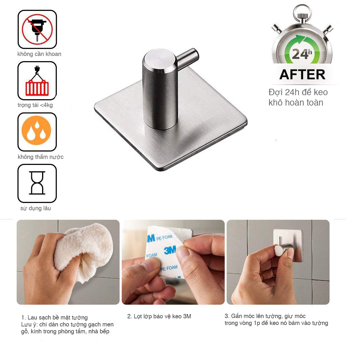 Móc dán tường chịu lực siêu dính treo đồ, vật dụng đa năng tiện ích inox 304 | Trùm đồ gia dụng