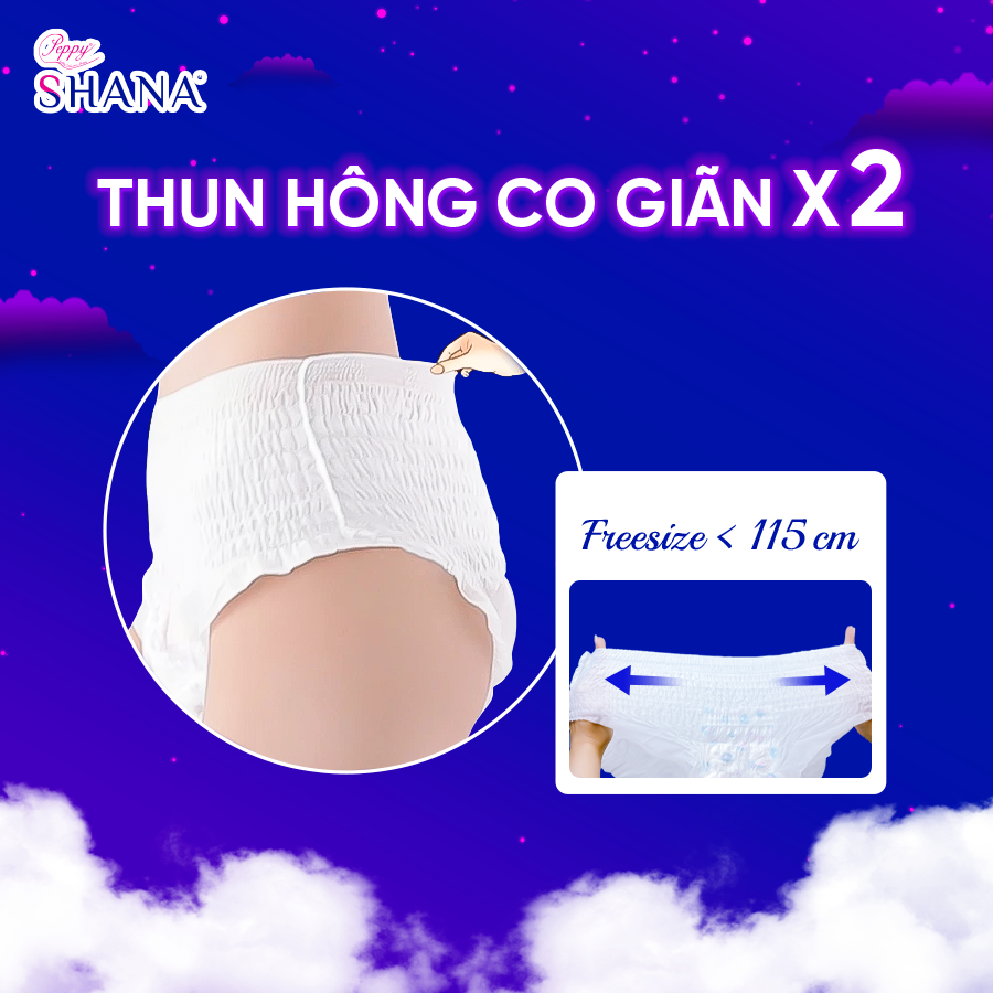 Combo 20 gói Băng Vệ Sinh Quần Peppy Shana Ngày Đêm Siêu Thấm, Freesize, Chống Tràn Tối Đa, Tiết Kiệm (40 miếng) I. MÔ TẢ SẢN PHẨM Trải qua ngày ấy thật thoải mái mà