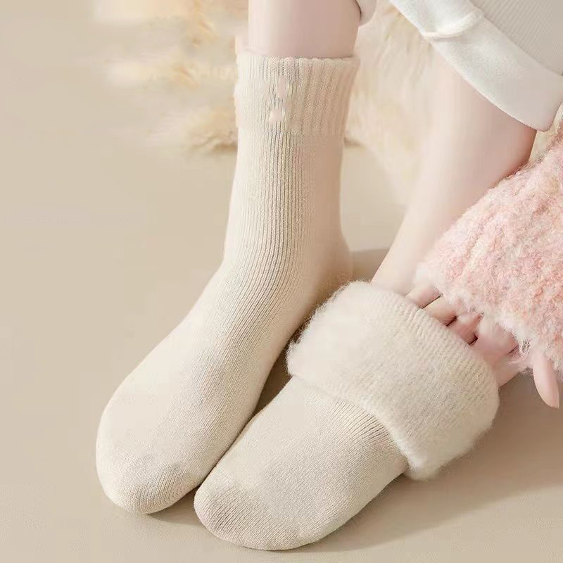 Set 5 Đôi Tất Bông Lót Lông Giữ Ấm Chân, Thoáng Khí Giữ Nhiệt Cực Tốt, Dày Dặn Hợp Thời Trang vid3