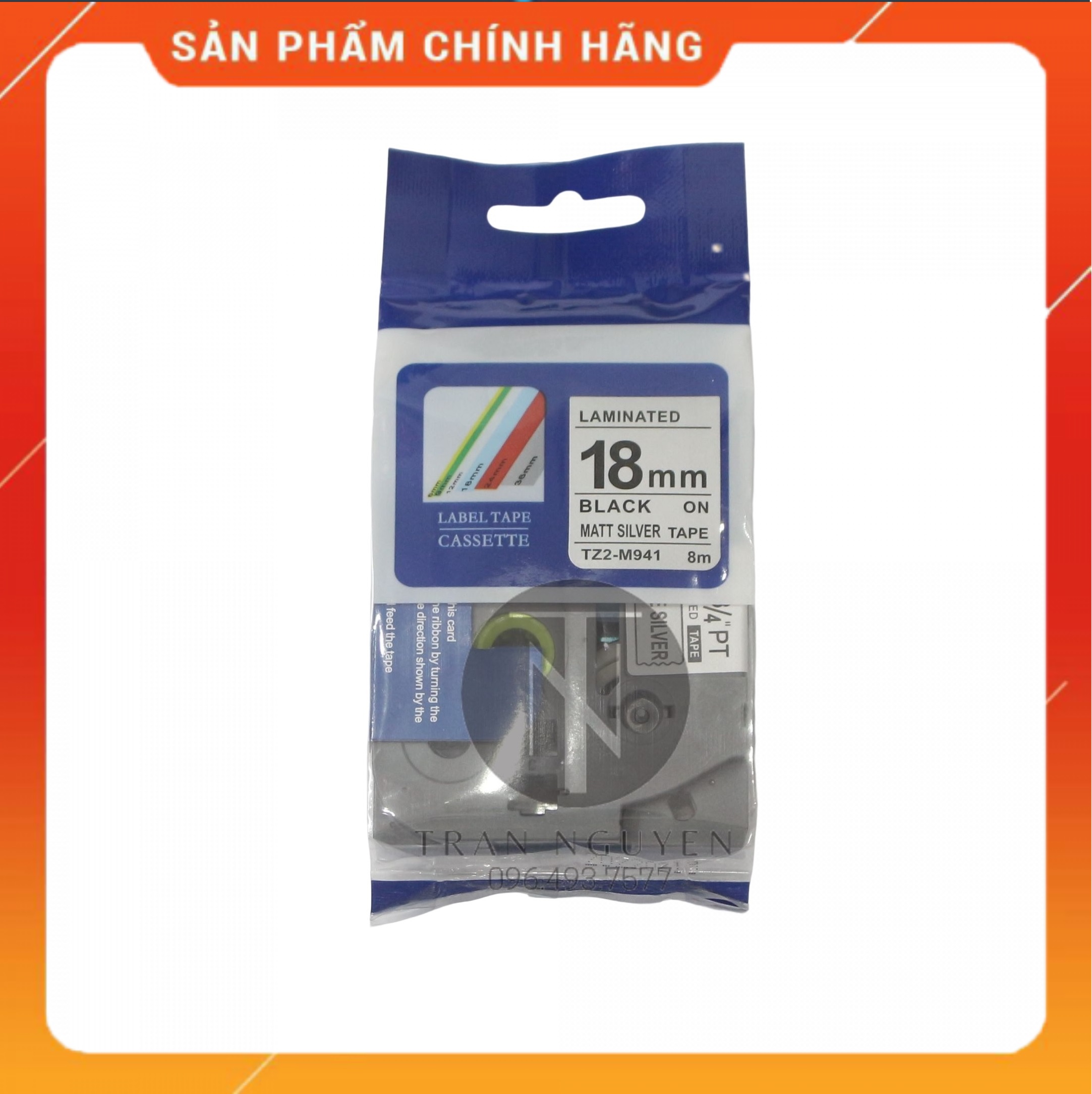 ✨[Combo 5 hộp] Nhãn In đa lớp Tz2-m941 - Đen nền bạc 18mm x 8m - Hàng nhập khẩu