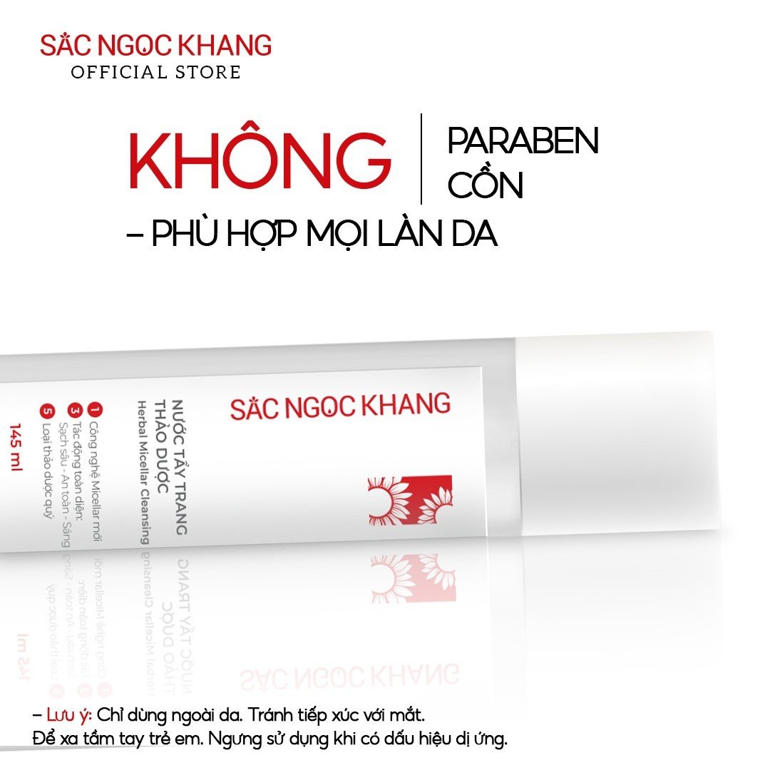 Mua tại TiktokCombo 5 món Nước tấy trang 145ml + Sữa rửa mặt 100g + Nước hoa hồng 145ml + Kem chống nắng 50g + Kem dưỡng da ban đêm 30g [Sắc Ngọc Khang Official] Nước tẩy trang Sắc Ngọc Khang 145ml Micellar Cleasing Water Tẩy sạch sâu – Dưỡng mịn da