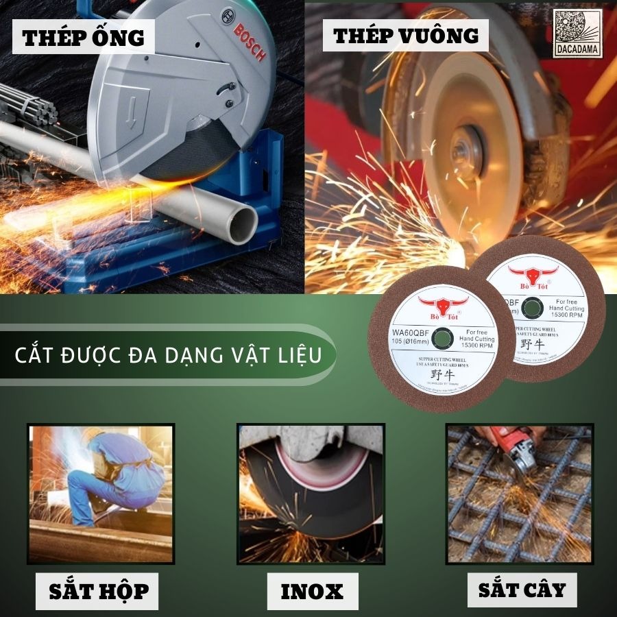 • Giảm bụi, giảm độ ồn, ít sinh nhiệt trong quá trình cắt. TÍNH NĂNG SẢN PHẨM: Sắc nét - chống mài mòn - tuổi thọ cao - độ chính xác hoàn hảo. ỨNG DỤNG: Cắt được đa dạng vật liệu: Sắt hộp, inox, sắt cây, thép ống, thép vuông...