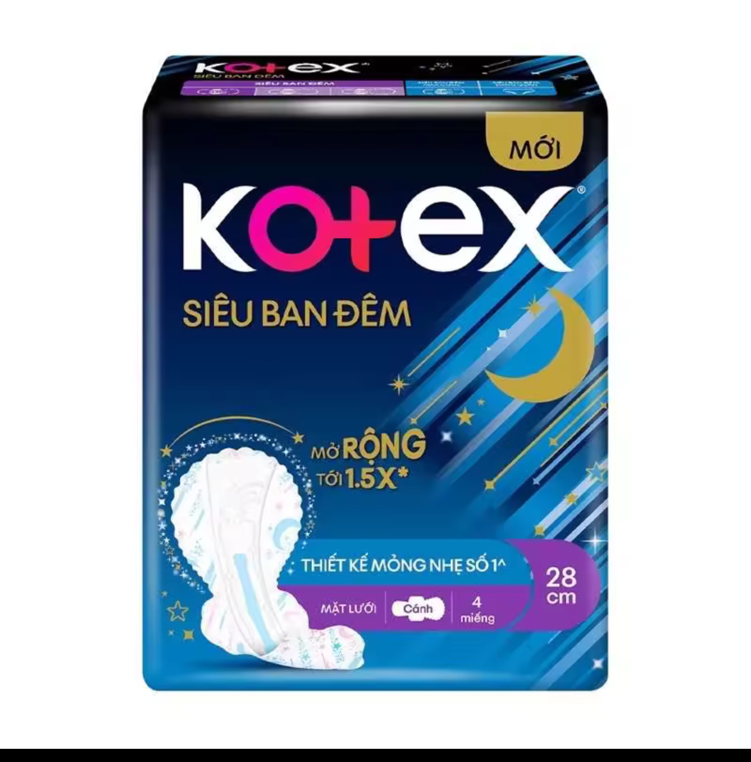 Combo 8 Gói Băng Vệ Sinh Kotex Siêu Ban Đêm 28cm - Mỗi Gói 4 Miếng -HSD luôn mớiCombo 8 Gói Băng Vệ Sinh Kotex Siêu Ban Đêm 28cm - Mỗi Gói 4 Miếng -HSD luôn mớiCombo 8 Gói Băng Vệ Sinh Kotex Siêu Ban Đêm 28cm - Mỗi Gói 4 Miếng -HSD luôn mới