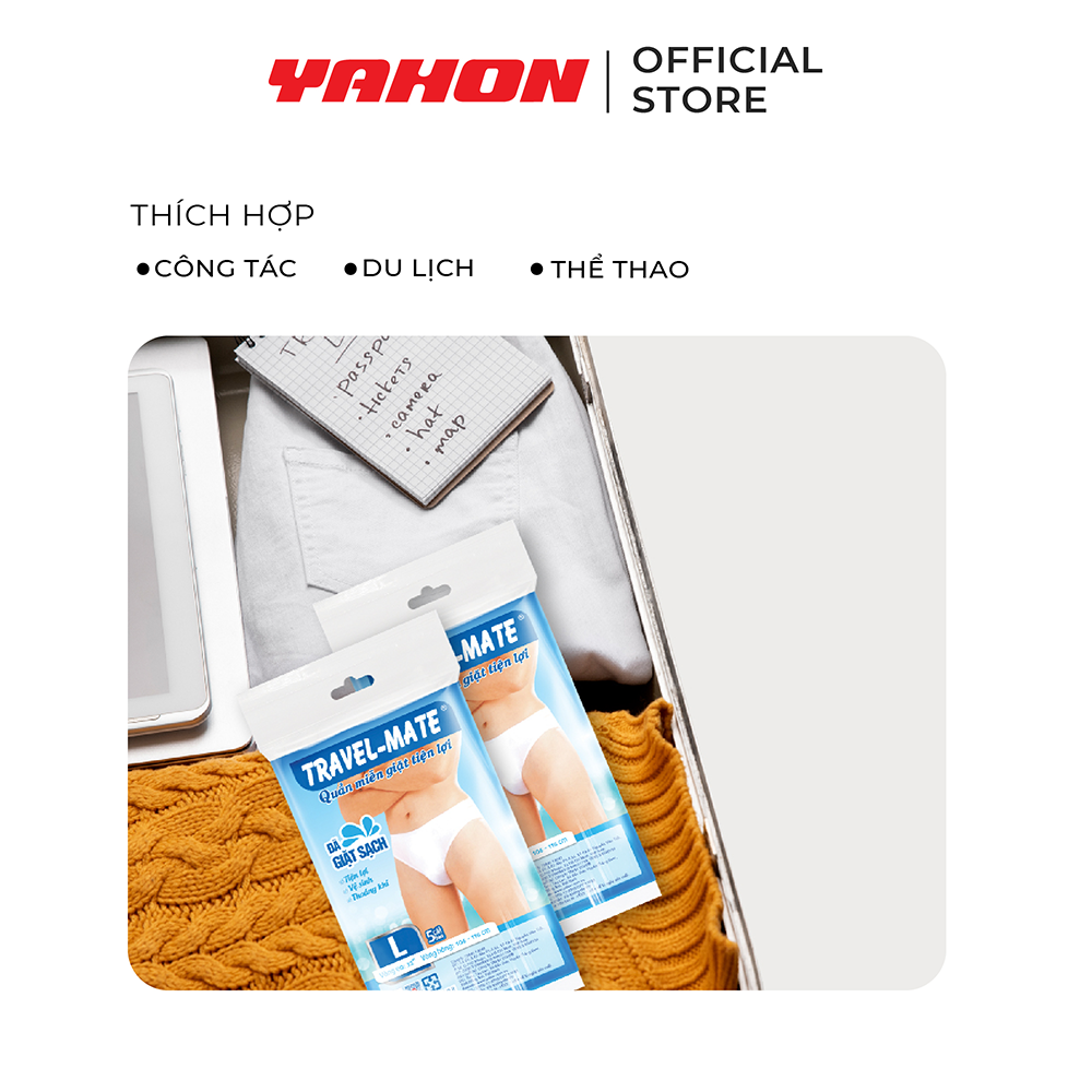 Mua tại TiktokQUẦN LÓT MIỄN GIẶT TRAVEL-MATE NAM Sản phẩm đã được giặt sạch, sấy khô trước khi đóng gói, đảm bảo vệ sinh. Thiết kế vừa vặn ôm sát vòng mông, cùng 2 miếng lót đáy dày, cho bạn cảm giác thoải mái khi sử dụng. Sử dụng một lần Thành phần: Vải PP Quy cách: Size L: Vòng mông: 92 – 102 cm; 5 cái/bao, 96 bao/thùng Size XL: Vòng mông: 106 – 116 cm; 5 cái/bao, 96 bao/thùng Hạn sử dụng: 3 năm kể từ ngày sản xuất NSX: in trên bao bì