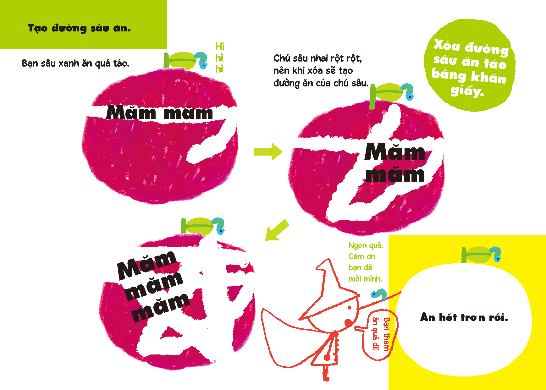 Quyển sách cho phép bé tự do tô vẽ, xé dán theo ý thích, thế nên dù có tô lem ra một chút, vẽ nguệch ngoạc một chút cũng không thành vấn đề! Hãy để bé vui chơi thỏa thích, tự mình tạo ra một thế giới mới để phát triển cá tính nhé!