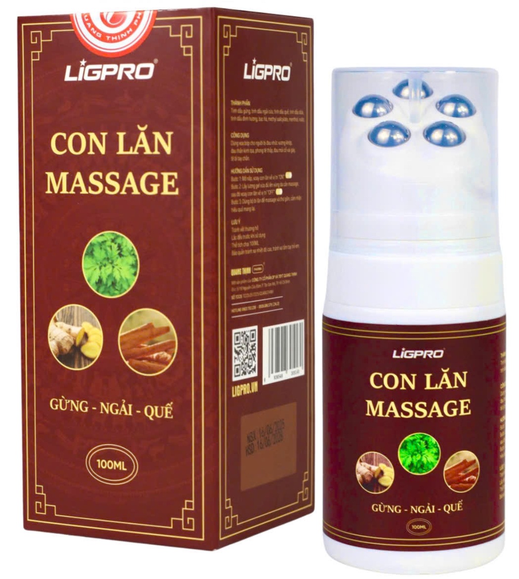 ✨Combo con lăn massa Ligpro gừng ngải quế 100ml, tặng kèm 1 xịt xoa bóp 50ml