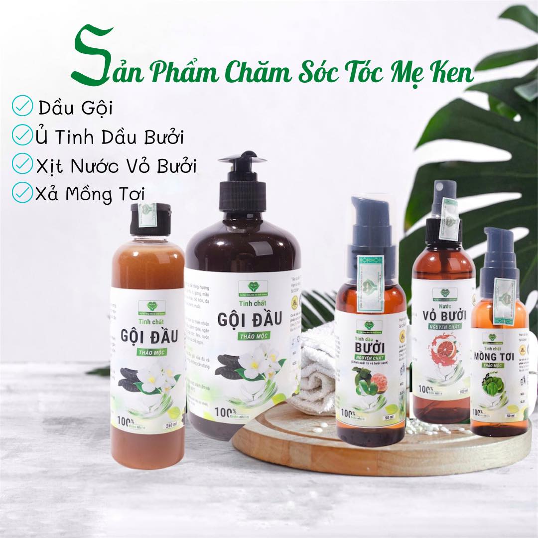 SẢN PHẨM CHĂM SÓC TÓC - TINH CHẤT GỘI ĐẦU CÔ ĐẶC THẢO MỘC DƯỠNG TÓC MẸ KEN     KHÁC HOÀN TOÀN DẦU GỘI TẠO BỌT ngoài thị trường và kèm dầu xả… hoàn toàn từ hoá chất, ít có tác dụng dưỡng mà thiên về silicon tạo cảm giác mướt ảo… Gây nên tình trạng rụng tóc, bít nang tóc, nhanh bết.   KHÁC VỚI CÁCH NẤU TRUYỀN THỐNG kết hợp BỒ KẾT, HƯƠNG NHU, MẦN TRẦU…. Hỗn hợp nước thiên nhiên này tốt tuy nhiên có khá nhiều nhược điểm như gây bết, rít, ko mướt, ko sạch, …   TINH CHẤT CÔ ĐẶC THẢO MỘC DƯỠNG TÓC MẸ KEN hoàn toàn khác biệt… Kết hợp tất cả những dược liệu quý và tinh dầu giúp tóc mềm mướt ngay lần gội đầu tiên mà lại thơm thoang thoảng mùi hoa bưởi, hoa nhài.   CÔNG DỤNG : Với chiết xuất HOÀN TOÀN THIÊN NHIÊN an toàn và tốt tuyệt đối cho cả trẻ con… Tinh chất thảo mộc với hơn 16 dược liệu quý giúp mọc tóc,hỗ trợ trị gàu nấm ngứa, ngừa rụng tóc, giúp tóc đen, suông mượt, chống khô xơ và chẻ ngọn…   THÀNH PHẦN : Bồ kết, vỏ bưởi, hương nhu, kinh giới, bạch chỉ, sả chanh, tầm ma, lá ổi, lá cứt lợn, lá hà thủ ô, lá chua me rừng, bạch đàn, gừng, mần trầu, hoa nhài, bách diệp, 1 số tinh dầu thiên nhiên làm mướt tóc, …   CÁCH SỬ DỤNG : Sử dụng gội đầu mỗi lần mà ko cần sử dụng dầu xả lại. Chỉ cần 1 ít là đủ… Rất tốt cho trẻ con và sản phụ sau sinh VÌ CHO CẢ TRẺ CON GỘI nên mùi hương trong dầu gội hoàn toàn từ thảo dược thiên nhiên. MẸ KEN ko sử dụng hương liệu.   TINH CHẤT GỘI ĐẦU CÔ ĐẶC THẢO MỘC DƯỠNG TÓC MẸ KEN