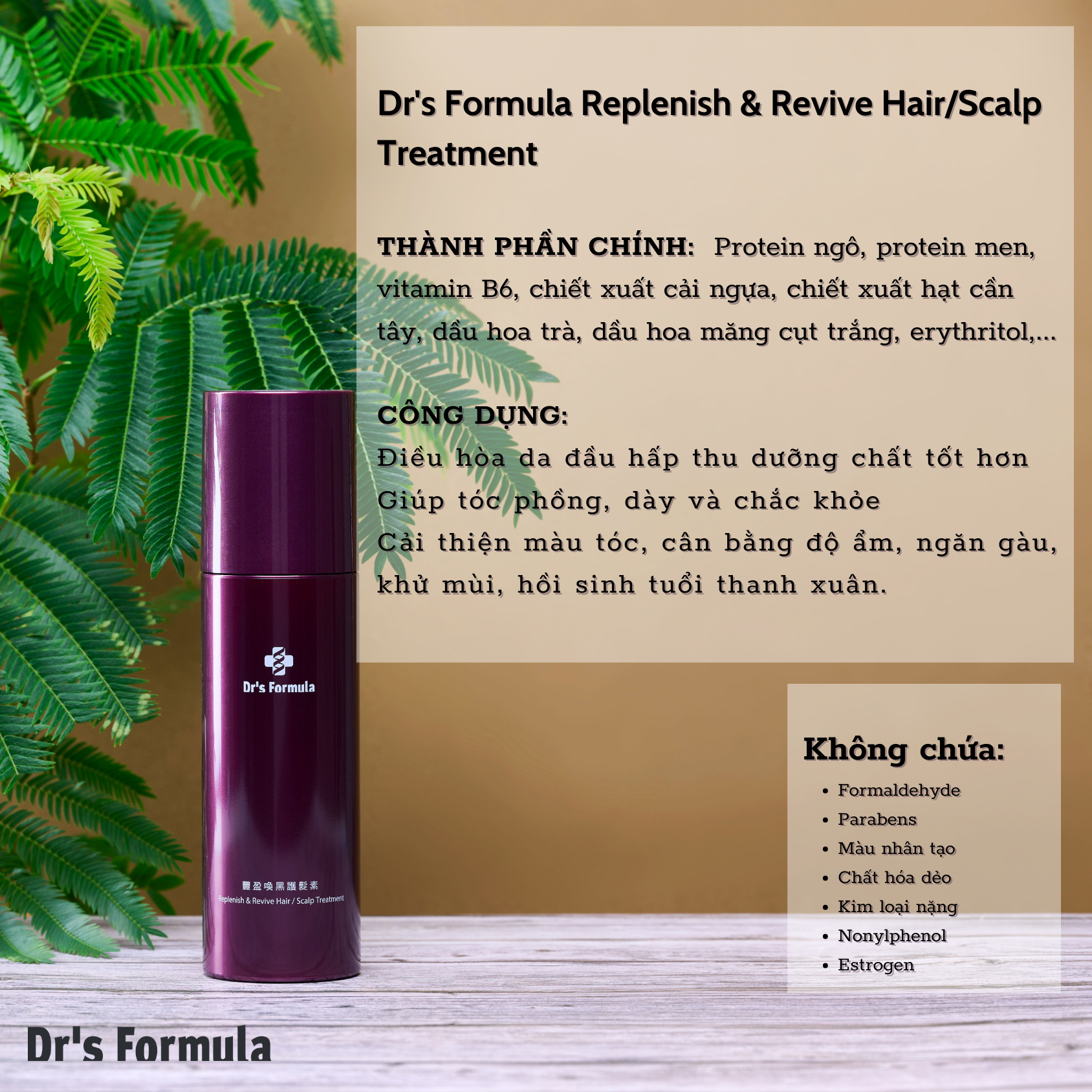 - 01 Tinh Chất Dưỡng Tóc Đen Bóng Mượt & Phục Hồi Dr's Formula Brightening & Recovering Hair Essence 140g ĐẶC TÍNH CÔNG DỤNG: