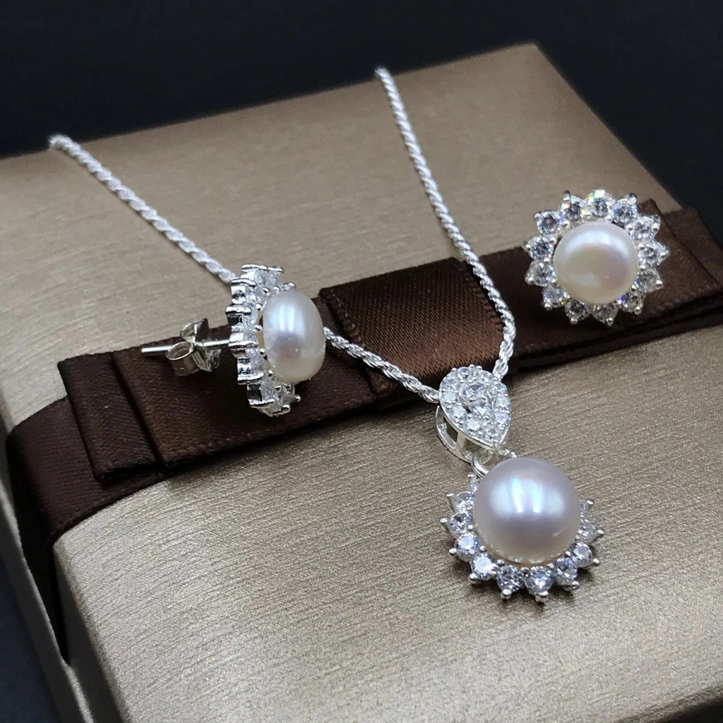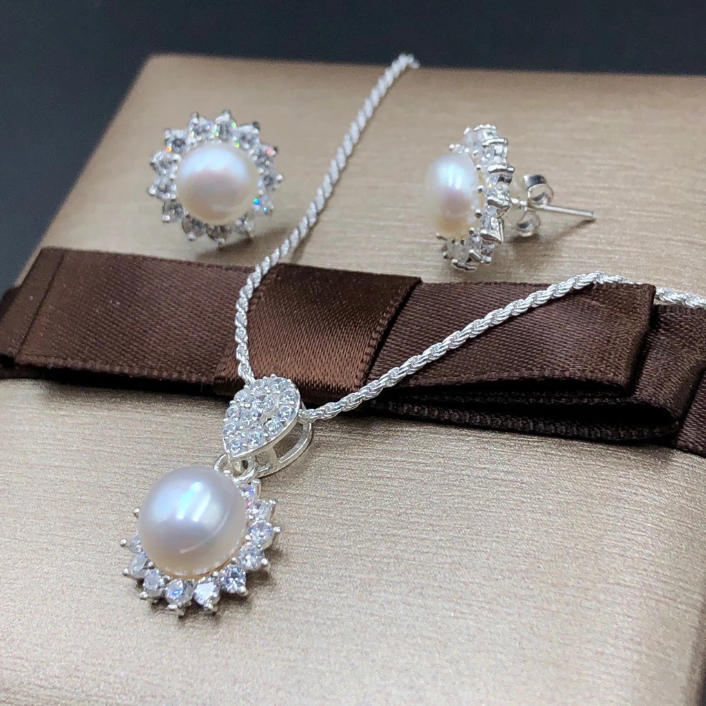 Chất liệu: Ngọc trai nuôi Kích thước: Hạt 8 - 9 mm Bao gồm: Dây chuyền đeo cổ, vòng đeo tay và bông tai Sang trọng để làm quà tặng người phụ nữ yêu quý