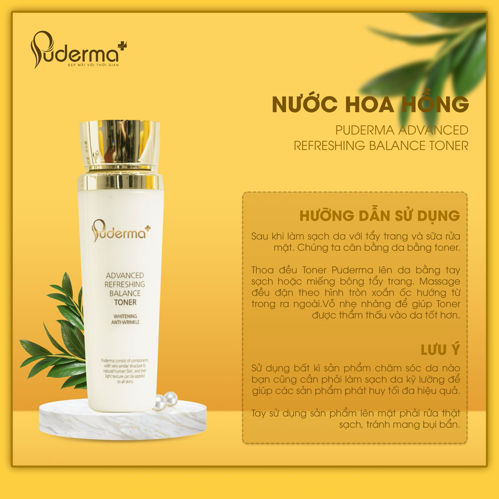 - Nước hoa hồng Puderma giúp làm sạch lớp trang điểm, bụi bẩn, dầu thừa trên da, giúp làm se khít lỗ chân lông, đồng thời cung cấp độ ẩm và dưỡng chất cho da, mang lại làn da trắng, mịn màng.