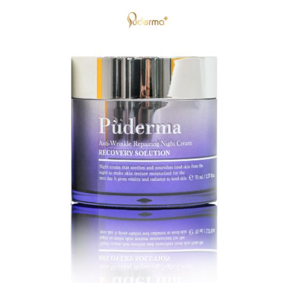 - Kem dưỡng da ban đêm Puderma Anti-Wrinkle Repairing Night Cream có chiết xuất tế bào gốc của cà rốt, hồng sâm, trà xanh, hoa hồng nhung tuyết, hoa cúc la mã, cây tre mỡ được sản xuất bằng công nghệ siêu phân tử nano giúp dưỡng chất nhanh chóng thấm sâu vào 3 lớp da nhằm tăng cường khả năng làm trắng sáng, trẻ hóa làn da.