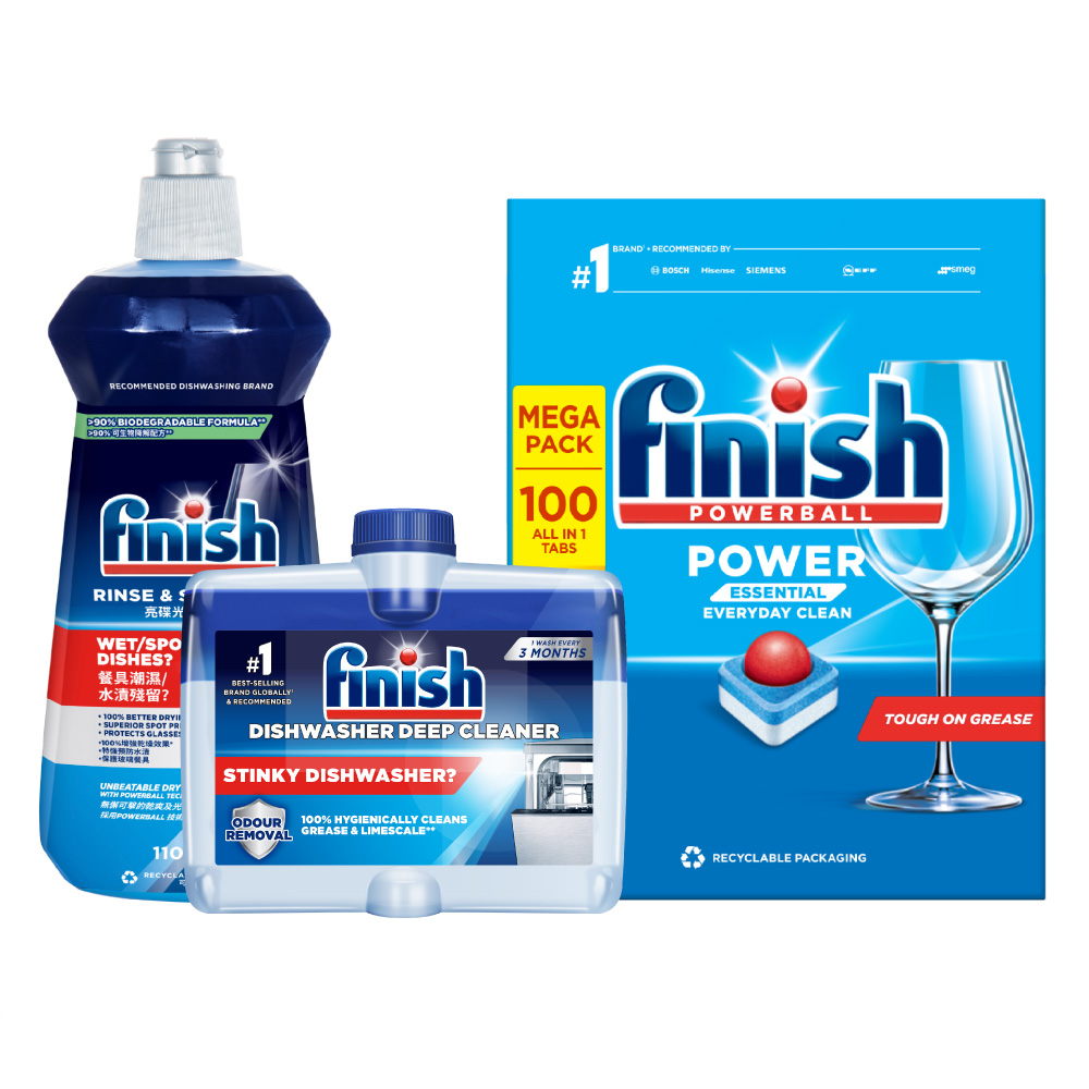 Hãng Finish khuyến cáo nên sử dụng 3 loại chất tẩy rửa riêng biệt để Bát đĩa sạch hơn, sáng bóng hơn và máy bền hơn. 3 loại chất tẩy rửa riêng biệt dùng cho