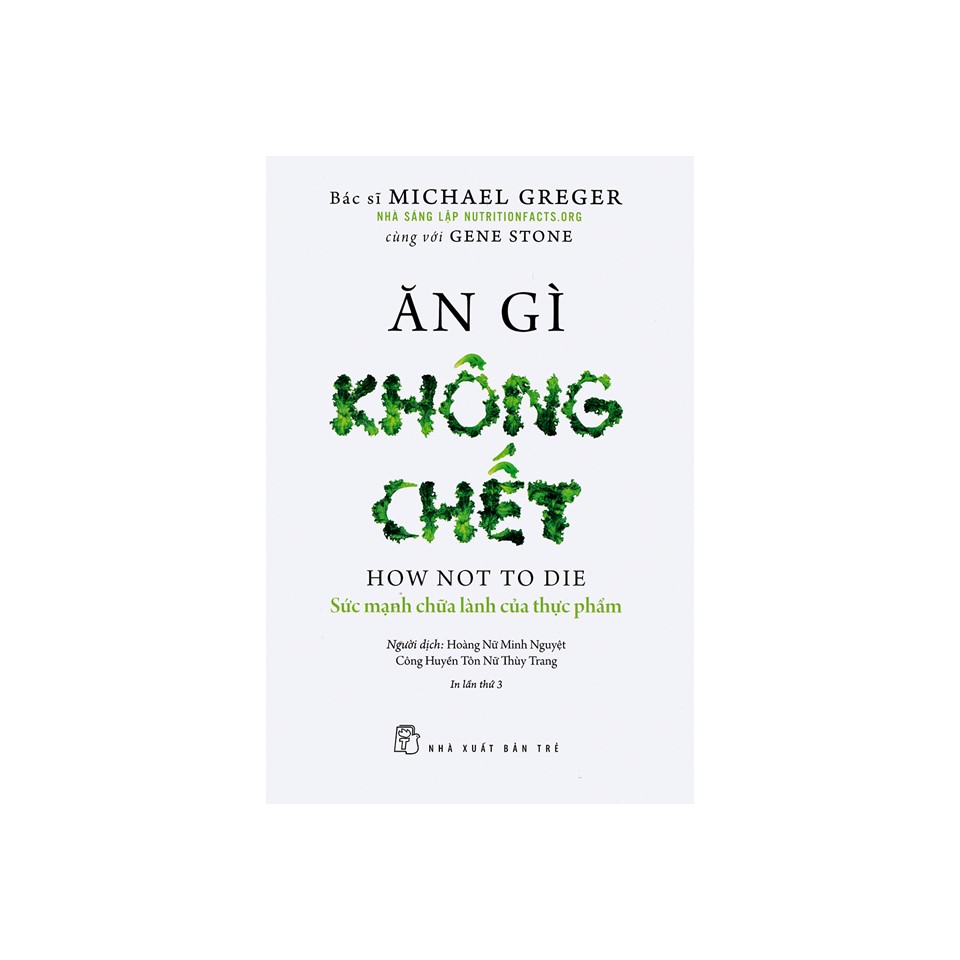 Rất nhiều cái chết trẻ có thể ngăn ngừa được đơn giản bằng những thay đổi trong chế độ ăn và lối sống. Trong cuốn Ăn gì không chết, bác sĩ Michael Greger, bác sĩ, chuyên gia dinh dưỡng nổi tiếng quốc tế, và là nhà sáng lập NutritionF, nghiên cứu tỉ mỉ 15 nguyên nhân hàng đầu dẫn đến chết trẻ ở Hoa Kỳ – bệnh tim, ung thư, tiểu đường, Parkinson, cao huyết áp, và nhiều bệnh khác – giải thích tại sao can thiệp dinh dưỡng và lối sống đôi khi có thể thành công hơn thuốc kê toa và các giải pháp phẫu thuật và thuốc men khác, cho chúng ta sống khỏe mạnh hơn.