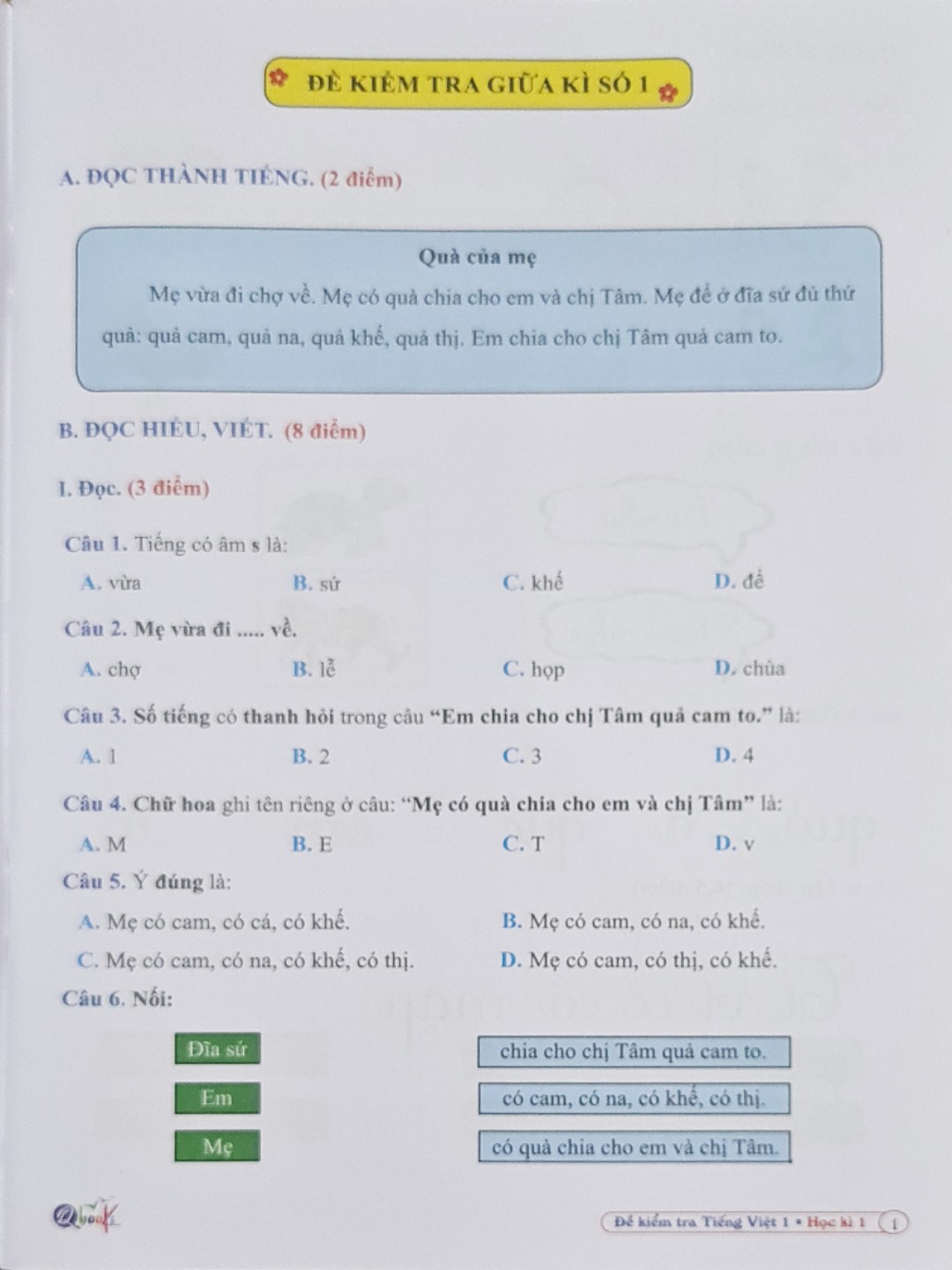 ĐỀ SỐ 1 - Đề kiểm tra giữa học kì 1