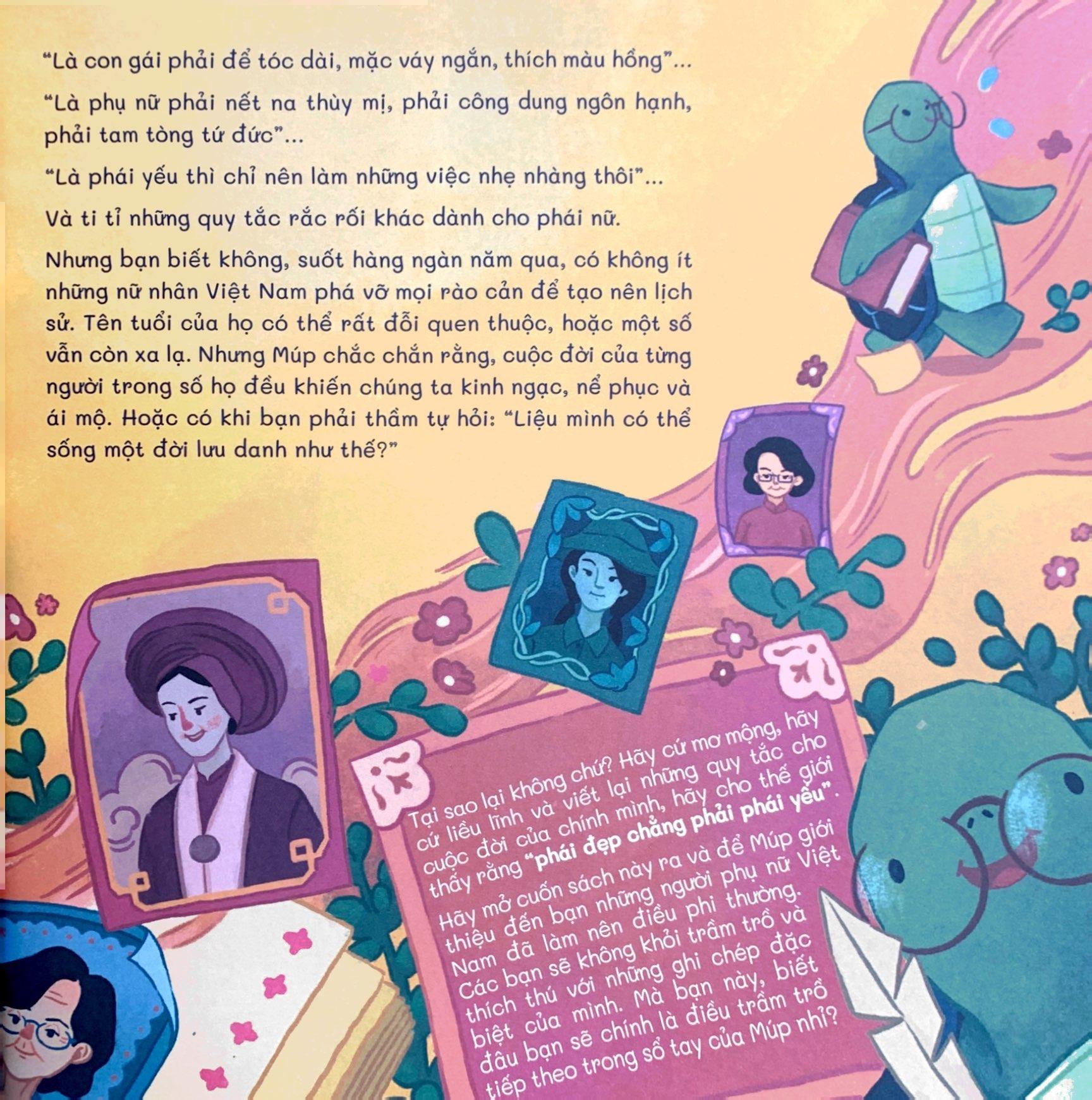 Các bạn nhỏ vẫn thường được người lớn kể cho nghe biết bao câu chuyện lịch sử mà ở đó, thường có những ông vua anh minh, được mệnh danh là “thiên tử”, những vị tướng oai dũng, tầm vóc to lớn, đầu đội trời, chân đạp đất hay những thần đồng, ông trạng cũng toàn là những người đàn ông làm vinh danh gia tộc, dòng họ hay tài trí hơn người. Sẽ thế nào nếu chúng ta cũng tìm hiểu về các giai đoạn lịch sử dân tộc nhưng thông qua câu chuyện của những người phụ nữ nhì? Để các bạn biết rằng lịch sử Việt Nam cũng có nữ hoàng, nhiều không kể xiết các vị nữ tướng anh dũng giết hàng vạn giặc và cả những tài nữ khiến đấng mày râu phải quỳ gối nể phục.