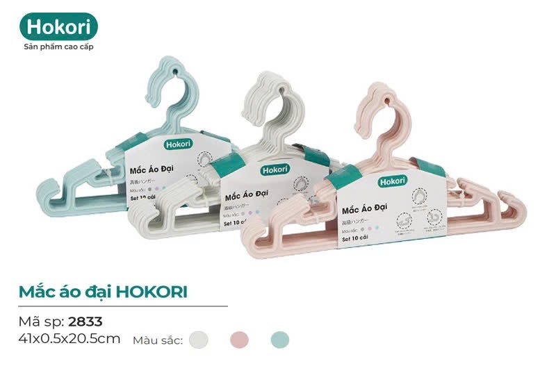 ✨Combo Set 10 Móc Treo Quần Áo Đại HokoriL 2833, Mắc quần áo người lớn nhựa Việt Nhật cao cấp