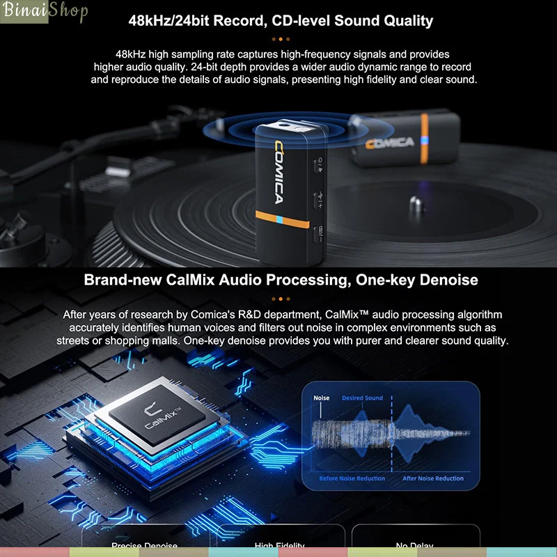 • Tốc độ lấy mẫu 48 kHz/24-bit, cung cấp dải động âm thanh rộng hơn để ghi và tái tạo chi tiết của tín hiệu âm thanh.