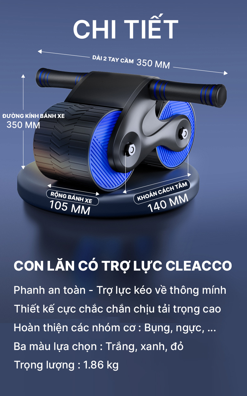 1.THÔNG TIN CHI TIẾT VỀ CON LĂN TẬP CƠ BỤNG 2 BÁNH CÓ LÒ XO TRỢ LỰC THẾ HỆ MỚI. - Thương hiệu: FED-CL03 - Chất liệu: Thép, Bàn đạp ABS - Bánh xe: Bánh