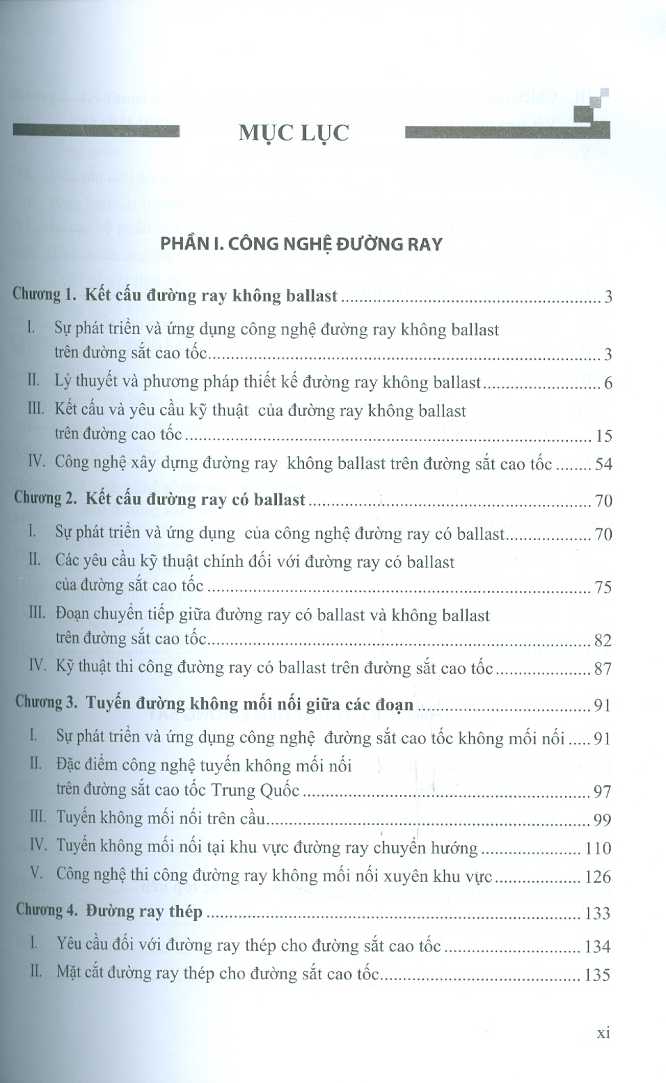 Cuốn sách Công nghệ xây dựng đường sắt cao tốc Trung Quốc có 6 phần, bản dịch được chia làm 2 tập: - Tập I: Bao gồm 2 phần, trong đó: Phần 1 là Công nghệ đường ray giới thiệu về kết cấu tầng trên, đường ray không khe nối, các thành phần kết cấu và hệ thống liên kết chúng. Kỹ thuật thiết kế đường ray không ballast dạng tấm bản kết hợp công nghệ đường ray không khe nối siêu dài vượt khu gian với bộ ghi không khe nối có tốc độ cao vi cho hướng rẽ đáp ứng vận hành an toàn êm thuận của đường sắt tốc độ cao hiện đại; Phần 2 là Kỹ thuật nền đường sắt với nội dung tập trung vào những kiến thức cơ bản và kỹ thuật liên quan đến nền đường sắt cao tốc, bao gồm: đặc điểm và thách thức kỹ thuật, tải trọng thiết kế và cấu trúc lớp đệm, vật liệu và chất lượng nén chặt, công nghệ kiểm soát lún, giám sát và đánh giá trạng thái nền đường. - Tập II: Bao gồm 4 phần, trong đó: Phần 3 là Công trình cầu đường sắt cao tốc với các nội dung như tổng quan về công nghệ cầu đường sắt cao tốc, tiêu chuẩn kỹ thuật cầu đường sắt cao tốc, hệ thống kết cấu chính của cầu đường sắt cao tốc, bảo dưỡng và sửa chữa cầu trên đường sắt cao tốc; Phần 4 là Kỹ thuật thi công đường hầm tập trung vào các vấn đề như khí động học, cấu trúc giảm chấn và kỹ thuật bảo trì đường hầm đường sắt cao tốc; Phần 5 là Công trình nhà ga nhấn mạnh vào yếu tố nhân văn, thẩm mỹ và thực tiễn, tập trung vào quy hoạch, thiết kế và xây dựng, các công nghệ tiên tiến và phương pháp thi công mới cho các hạng mục như nền móng, kết cấu chính của nhà ga, mái che có nhịp lớn và không gian lớn, đồng thời đưa ra các giải pháp thi công thân thiện với môi trường; Phần 6 Giới thiệu thực tiễn kỹ thuật tuyến Bắc Kinh - Thiên Tân, nội dung bao gồm các công nghệ xây dựng cơ sở hạ tầng trước ga cho đường sắt cao tốc như nền đường, cầu cạn, đường ray không ballast và các biện pháp bảo vệ môi trường, đồng thời đề xuất giải pháp xử lý kỹ thuật đối với việc lắp đặt đường ray không ballast tại những khu vực có hiện tượng lún đất.