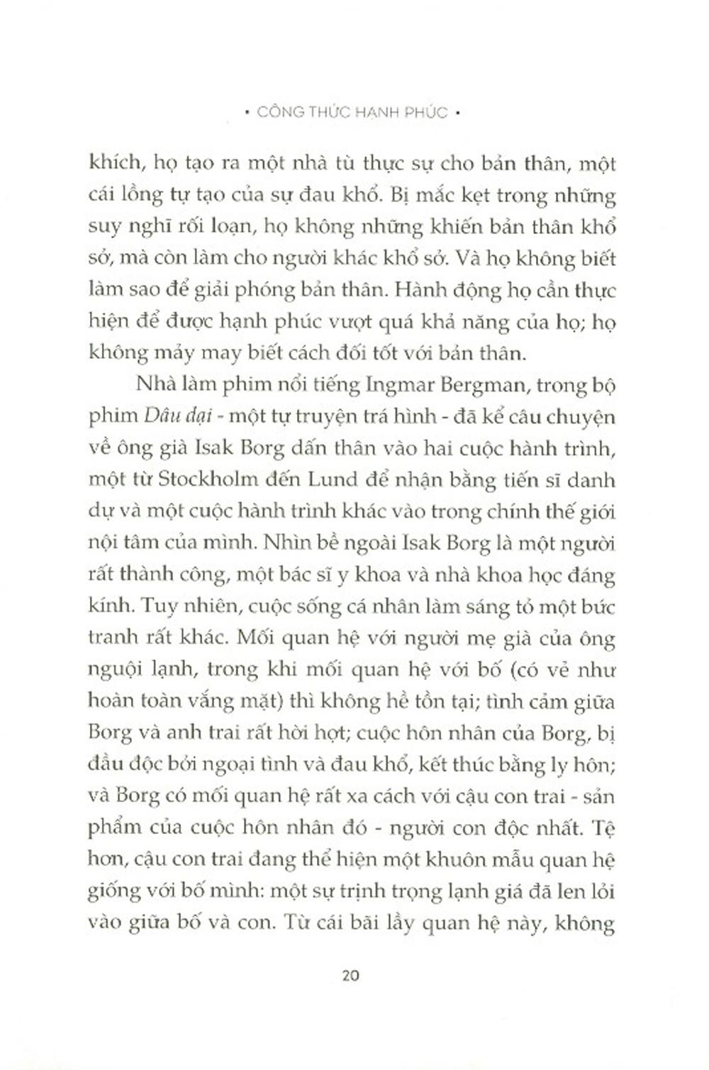 Hạnh phúc thực ra là gì? Công thức nào tạo ra hạnh phúc? Trong cuốn sách này, Kets de Vries nỗ lực giải cấu trúc khái niệm trừu tượng ấy. Ông đi từ quan điểm sinh học, thống kê học, tâm lý học, triết học tự cổ chí kim đến cả các trích dẫn từ nhà văn, nhà thơ, nghệ sĩ, và trên hết, những trải nghiệm cá nhân, nhằm tìm ra một "đơn thuốc" giúp tăng cường khả năng đạt được hạnh phúc. Đơn thuốc ấy có hiệu quả hay không tùy thuộc ở mỗi người, nhưng có một điều chắc chắn: hạnh phúc luôn ở đâu đó, trong hiện tại và trong tương lai, và ta không bao giờ được mất hy vọng. Tác giả MANFRED F. R. KETS DE VRIES là một học giả về quản trị, nhà phân tâm học, cố vấn, giáo sư môn phát triển lãnh đạo và thay đổi tổ chức tại trường kinh doanh INSEAD. Ông là tác giả của 48 cuốn sách cùng hơn 500 bài luận khoa học về các chủ đề như lãnh đạo, phát triển sự nghiệp và thay đổi tổ chức. Năm 2001, ông được Hiệp hội Tâm lý học Hoa Kỳ trao giải Harry và Miriam Levinson vì những đóng góp trong lĩnh vực tư vấn. Năm 2005, ông là người nước ngoài đầu tiên nhận Giải Lãnh đạo Quốc tế của Hoa Kỳ dành cho những đóng góp của ông trong lĩnh vực quản trị. Các tạp chí The Financial Times, Le Capital, Wirtschaftswoche và The Economist xếp ông là một trong những nhà tư tưởng về lãnh đạo hàng đầu thế giới.