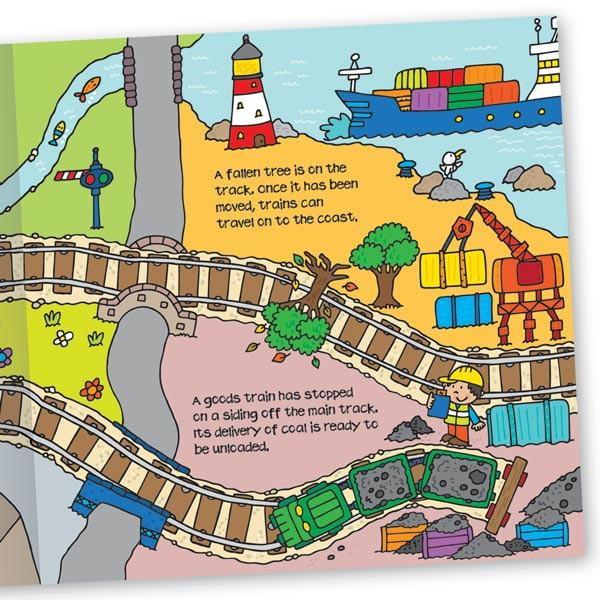 This versatile convertible book engages preschool kids with its entertaining story and striking illustrations. Read the short story with your child about a busy train on an important journey to deliver some coal. The illustrated play mat, designed as a train track, allows your child to follow and interact with the story using their own toys. Finally, the sit-in train will provide hours of fun and imaginative play.