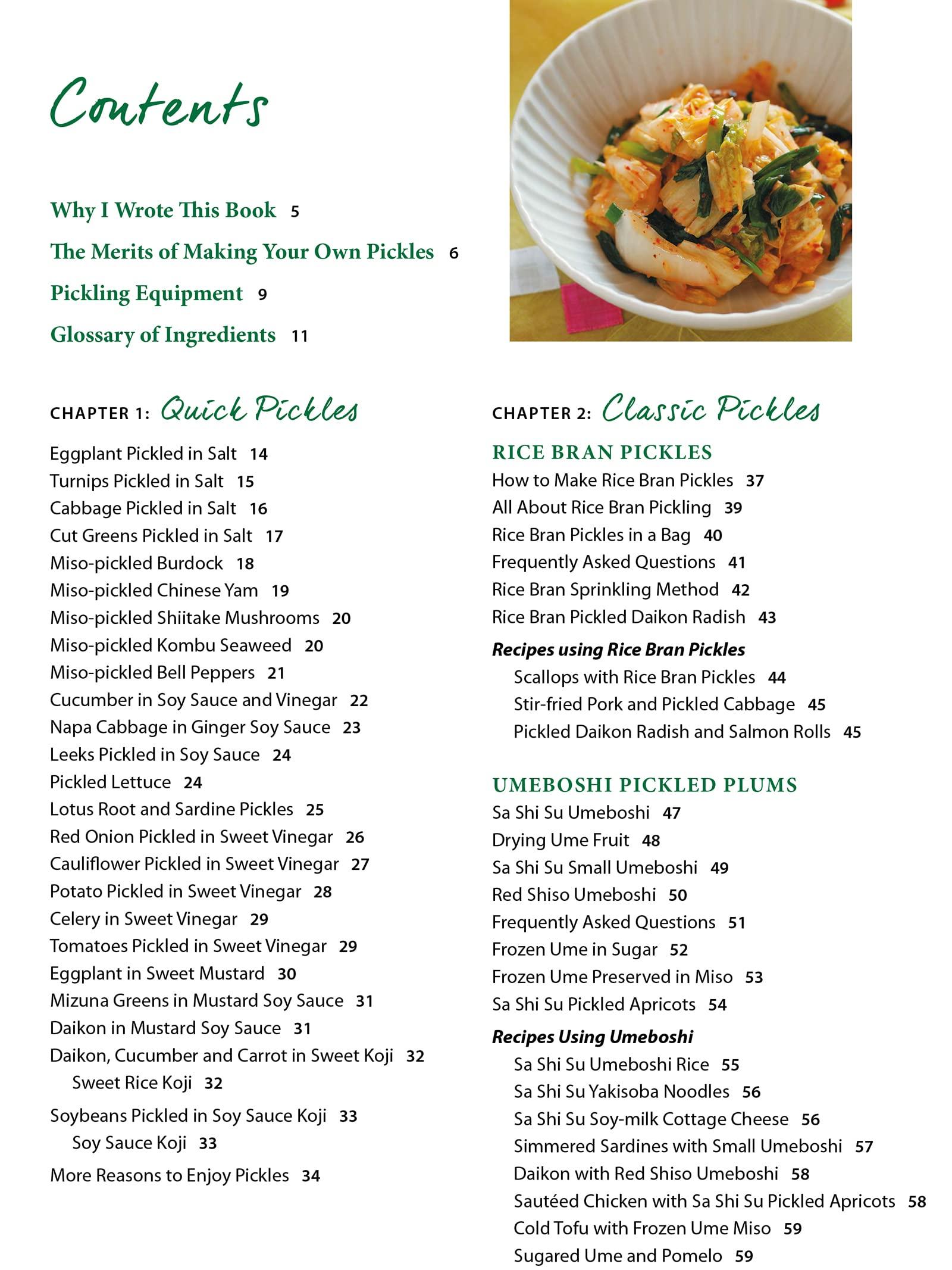 Chapter Two: Classic Japanese pickling recipes--such as Umeboshi Preserved Plums, Napa Cabbage Kimchi, and Daikon Radish Pickled in Miso