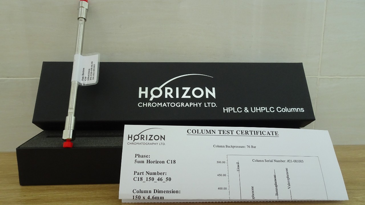 - Các cột HPLC Horizon được kiểm tra chất lượng xuất xưởng bằng cách sử dụng thử nghiệm kiểm soát chất lượng nghiêm ngặt nhất trong kỹ thuật sắc ký.