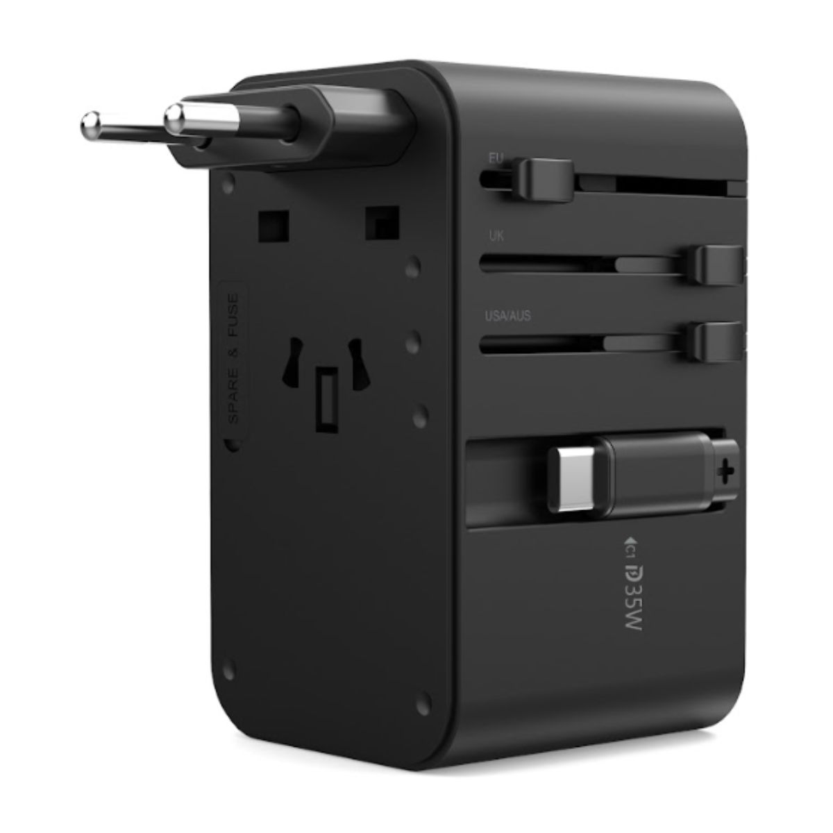 - Bộ sản phẩm đi kèm đến 4 chuẩn jack cắm, là 4 chuẩn ổ cắm phổ biến được các quốc gia trên thế giới sử dụng hiện nay. Việc cho phép thay đổi đầu cắm khác, cho phép người dùng có thể sử dụng bộ sạc ở hơn 200 quốc gia và khu vực khác nhau trên thế giới mà không gặp vấn đề gì.