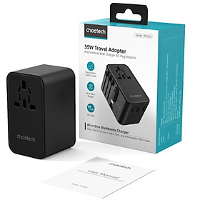 Củ sạc Choetech PD5020 du lịch đa năng tích hợp thêm dây cáp sạc Type C (35W)/ PD5021 (45W)/ PD5022 (70W)- Hàng chính hãng
