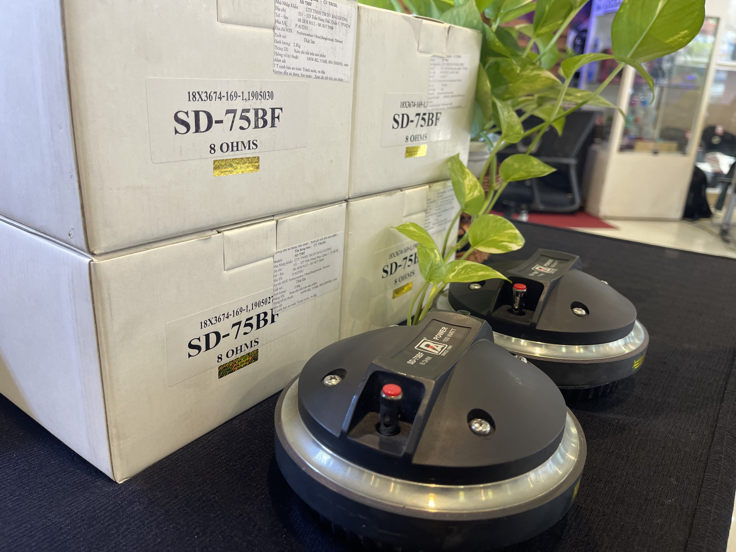P Audio SD-75BF là trình điều khiển nén định dạng lớn, sử dụng cụm màng hình thành chính xác. Màng loa titan được hình thành chính xác để đảm bảo tính nhất quán và hiệu suất tuyệt vời. Mạch từ mới được phát triển đã được mô hình hóa rộng rãi để giảm trọng lượng trong khi vẫn duy trì năng lượng khoảng cách từ rất cao. Việc lắp ráp màng loa được đặt gần với phích cắm pha chính xác để đảm bảo tải âm tuyệt vời. SD-75BF có dải hoạt động từ 800Hz đến 20kHz và phù hợp lý tưởng cho các ứng dụng tần số cao hai chiều và ba chiều trong các hệ thống tăng cường âm thanh chuyên nghiệp. SD-75BF là một hệ thống từ tính dựa trên ferrite với đường kính thoát 1,4 inch (35,5mm) tiêu chuẩn công nghiệp. Các cấu hình gắn là một bu lông tiêu chuẩn về phong cách. P Audio cung cấp nhiều loại còi tần số cao đa dạng sẽ cung cấp khả năng kiểm soát mẫu và tải âm thanh tuyệt vời cho SD-75BF. Tổ hợp màng có thiết kế titan tinh khiết thương mại có đường kính 3 inch (76,2mm) và sử dụng hệ thống kết dính nhiệt độ rất cao của P Audio và sản xuất chính xác để đảm bảo khả năng xử lý công suất cao và độ tin cậy. Công trình mang lại công suất xử lý công suất 100 watt. Đường kính màng lớn hơn (3 inch) cung cấp đáp ứng dải giữa vượt trội và là lựa chọn tuyệt vời cho các hệ thống tăng cường âm thanh chuyên nghiệp công suất cao.