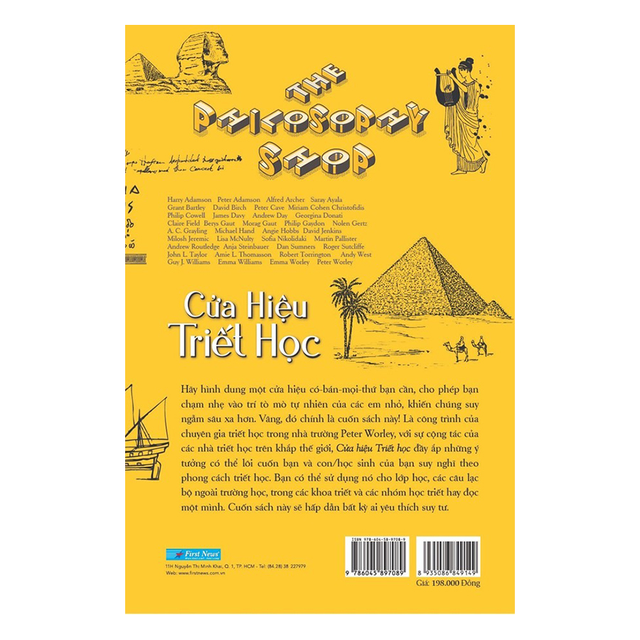 4. Ngôn ngữ và ý nghĩa hay Có thể nói gì về cái hiện hữu Cửa hiệu Triết học dành cho những ai thích chủ động đắm mình vào những ý tưởng hơn là thụ động đón nhận thông tin. Cuốn sách này bao gồm những bài viết cho nhiều độ tuổi và độ tuổi có thể bắt đầu đọc được ghi ngay dưới tựa mỗi bài viết. Cũng có thể có những độc giả cụ thể hơn quan tâm đến cuốn sách này như: Giáo viên và lớp học; Các khóa học triết, các nhóm hội thảo chuyên đề ở đại học và trợ giảng; Các nhóm đọc triết hay nhóm thảo luận; các nhóm trẻ và các nhóm ở nhà thờ; Cha mẹ với con cái và các câu lạc bộ triết học ngoài trường lớp; hoặc những cá nhân quan tâm và yêu thích triết học. Cuốn sách này được viết bởi Peter Worley và các nhà triết học từ khắp nơi trên thế giới. Cửa hiệu Triết học đã nhận được giải Education Resources Award tại Best Educational Book năm 2012. Giành chiến thắng tại New England Book Festival 2012 cho hạng mục Compilations / Anthology. Và thắng chung cuộc giải ForeWord Review Book năm 2012.