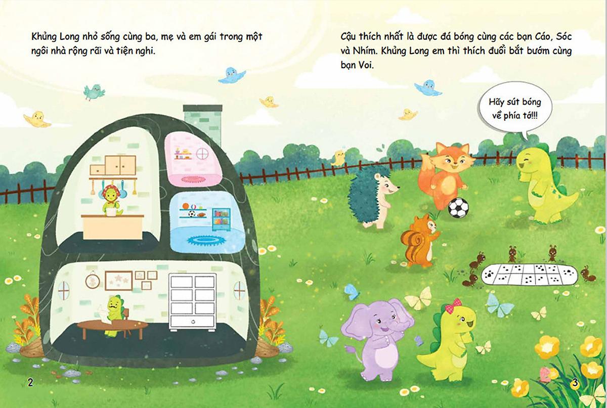 Tuy nhiên, khi tiếp tục lật giở từng trang sách, dần dần các em sẽ thấy với sự động viên của bố mẹ, bạn bè và hơn cả là nhờ quyết tâm của bản thân, Khủng Long nhỏ đã từng bước khắc phục điểm yếu, học thêm kĩ năng mới, làm được biết bao việc có ích: nào là trông Khủng Long em, mua trứng giúp mẹ, nào là biết nhận lỗi và giúp bạn Heo trồng lại vườn rau, rồi cả cách làm việc nhóm sao cho hiệu quả nữ