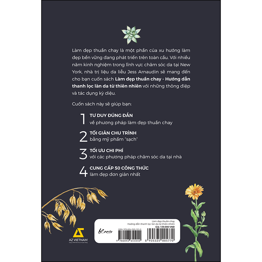Làm đẹp thuần chay - Hướng dẫn thanh lọc làn da từ thiên nhiên sẽ giúp bạn kiến tạo tư duy đúng đắn về làm đẹp bằng thiên nhiên: Không tập trung vào việc sửa chữa những vấn đề trên bề mặt mà hướng đến việc đem lại sức khỏe cho cả cơ thể bạn. Một làn da khỏe đẹp là sự kết hợp của nhiều yếu tố: Những cảm xúc lành mạnh, những bài tập nhẹ nhàng, một chế độ ăn uống giàu các chất chống lão hóa có tác dụng chữa lành, một hệ tiêu hóa hoạt động đúng cách và một lối sống chánh niệm, tràn đầy đam mê.