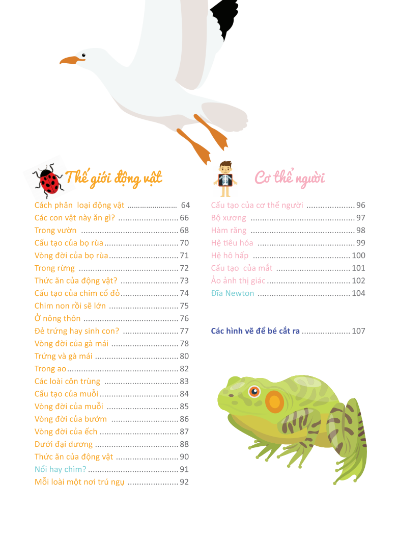 Sau đó, trẻ sẽ được khuyến khích khám phá thế giới sinh vật sống qua các hoạt động khác nhau liên quan đến thế giới động vật và thực vật, cùng cơ thể con người: Vòng đời của cây diễn ra như thế nào? Có gì bên trong một quả trứng? Cơ thể con người được cấu tạo ra sao?