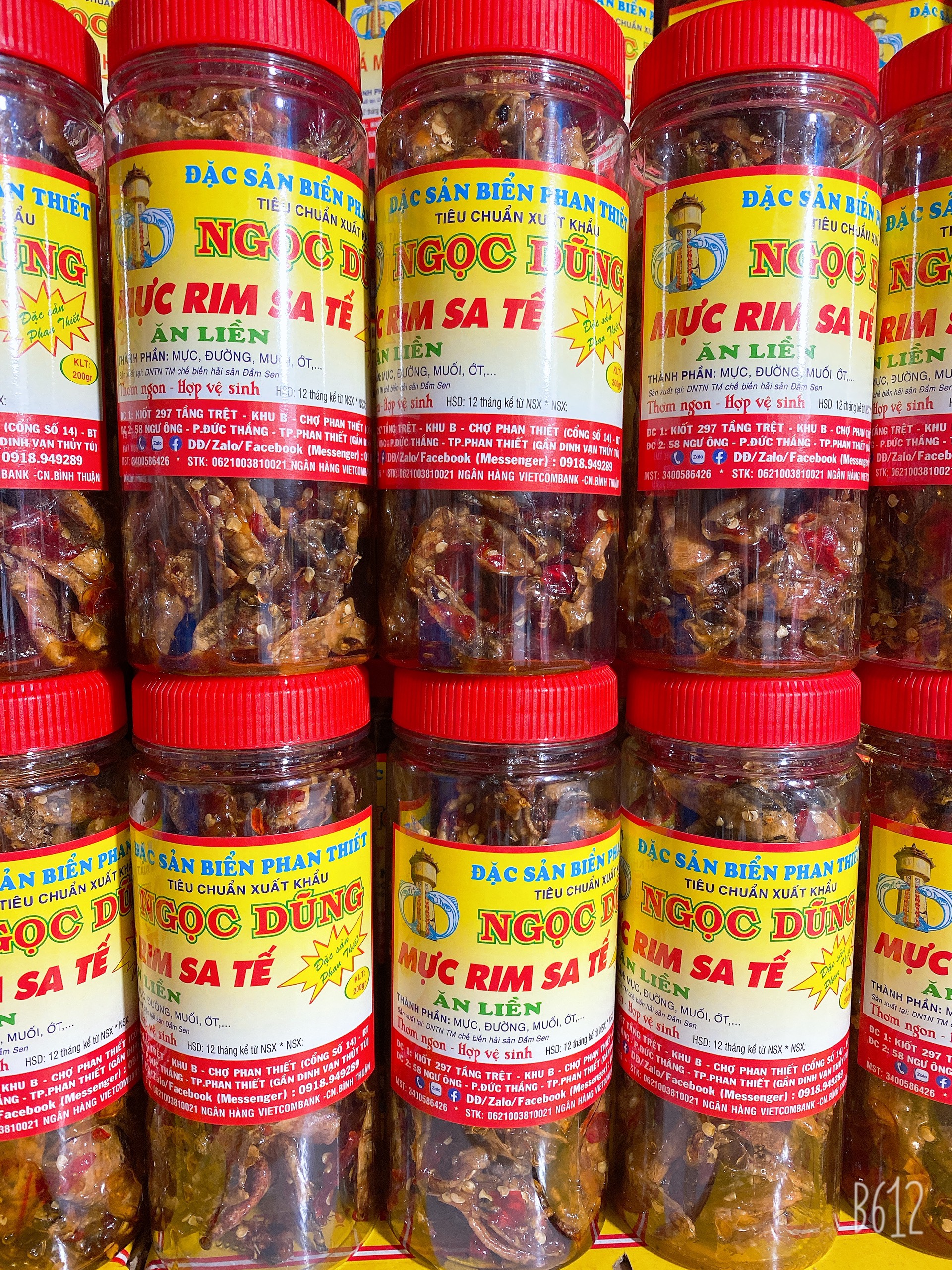 Mực rim sa tế ( ăn liền ) hộp 200 gram là sản phẩm trải nghiệm được chế biến từ mực ống hay mực lá còn tươi xanh tại Cảng cá Phan Thiết tỉnh Bình Thuận là món ăn ngon của Shop Đặc Sản Biển Phan Thiết NGỌC DŨNG.
