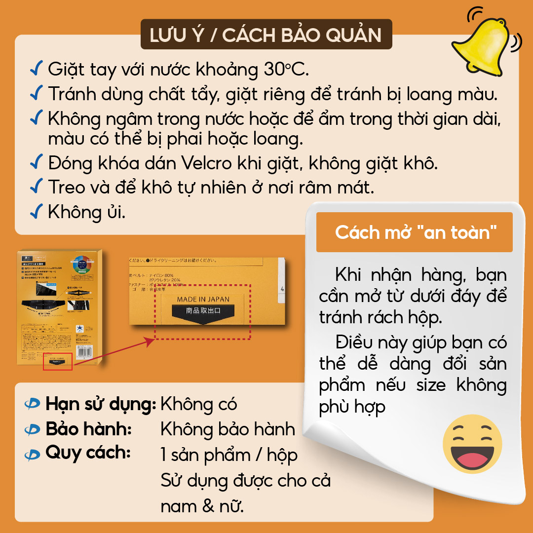 - Các miếng đệm và đai hỗ trợ mang lại sự vừa vặn và thoải mái. Kích cỡ: M: (Kích thước vòng eo: 31,5” ~ 39,0”) (80,00cm~99,06cm) L: (Kích thước vòng eo: 37,5” ~ 45,25”) (95,25cm~114,94cm) *Chiều rộng: 9” (22.85cm) (Giống nhau cho tất cả các cỡ) Chất liệu: -Thân đai (Center): 93% Nylon, 7% Polyurethane -Thân đai (Side): 80% Nylon, 20% Polyurethane -Thân đai (mặt sau), cả 2 mặt: 80% Nylon, 20% Polyurethane -Đai hỗ trợ: Nylon, Polyethylene -Khóa dán: Polyester 100% Công nghệ: Metax Sản xuất: Nhật Bản Quy cách đóng gói: 1 cái/hộp Đối tượng sử dụng: