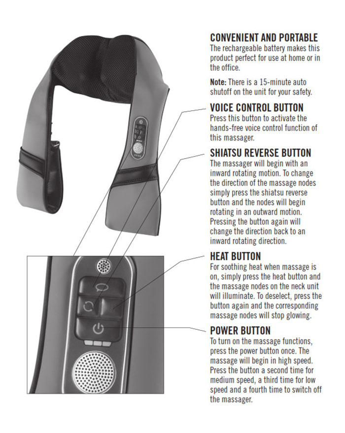 Đai massage thông minh công nghệ 3D Shiatsu MÔ TẢ SẢN PHẨM *Đai massage vai cổ gáy pin sạc điều khiển giọng nói HoMedics NMS-675H với khả năng điều khiển bằng giọng nói thông minh