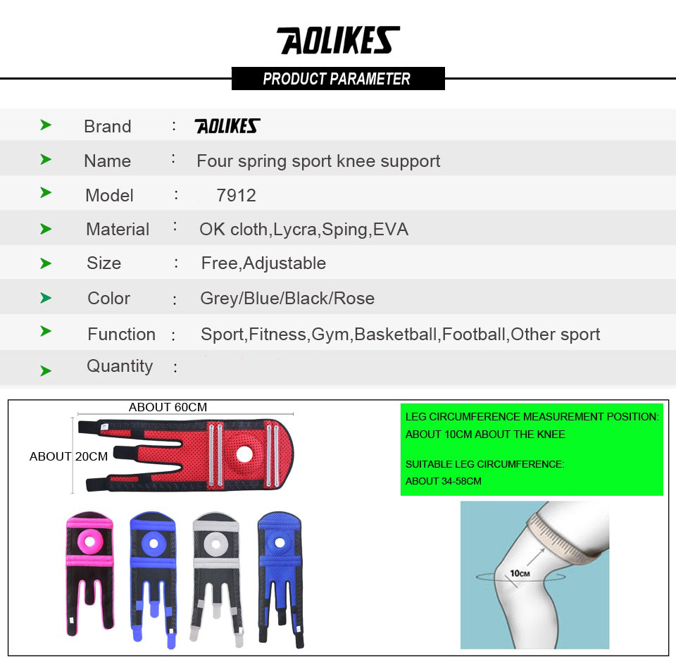 Đai quấn bảo vệ đầu gối AOLIKES A-7912 spring sport knee support AOLIKES 1PCS HONOR Spring Adjustable Sports Leg Knee Support Brace Wrap Pads Sleeve Cap Bộ 2 đai bó quấn bảo vệ đầu gối
