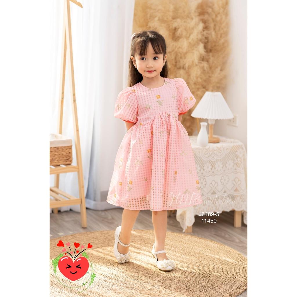 ✨Đầm babydoll hoa cho bé gái tay phồng phong cách Hàn Quốc từ 12-35kg chất vải tơ mềm mát