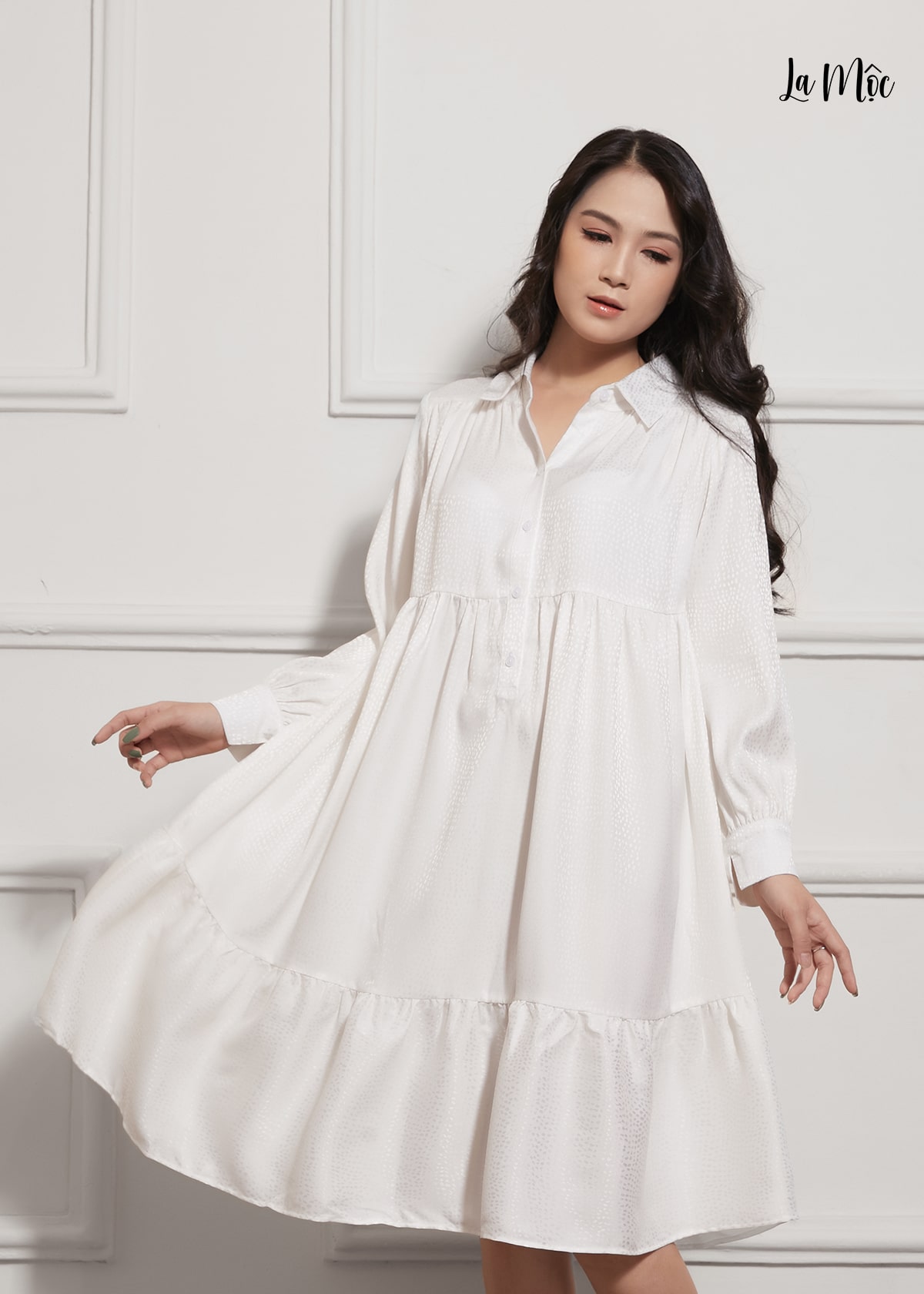 - Thông tin sản phẩm Mã sản phẩm: LM012211 Chất liệu: LỤA CREP KOREA Xuất xứ: Việt Nam Đặc điểm: Thiết kế tay dài phồng nhẹ ở cổ tay, nhún bèo ở tùng đầm, cổ bẻ.